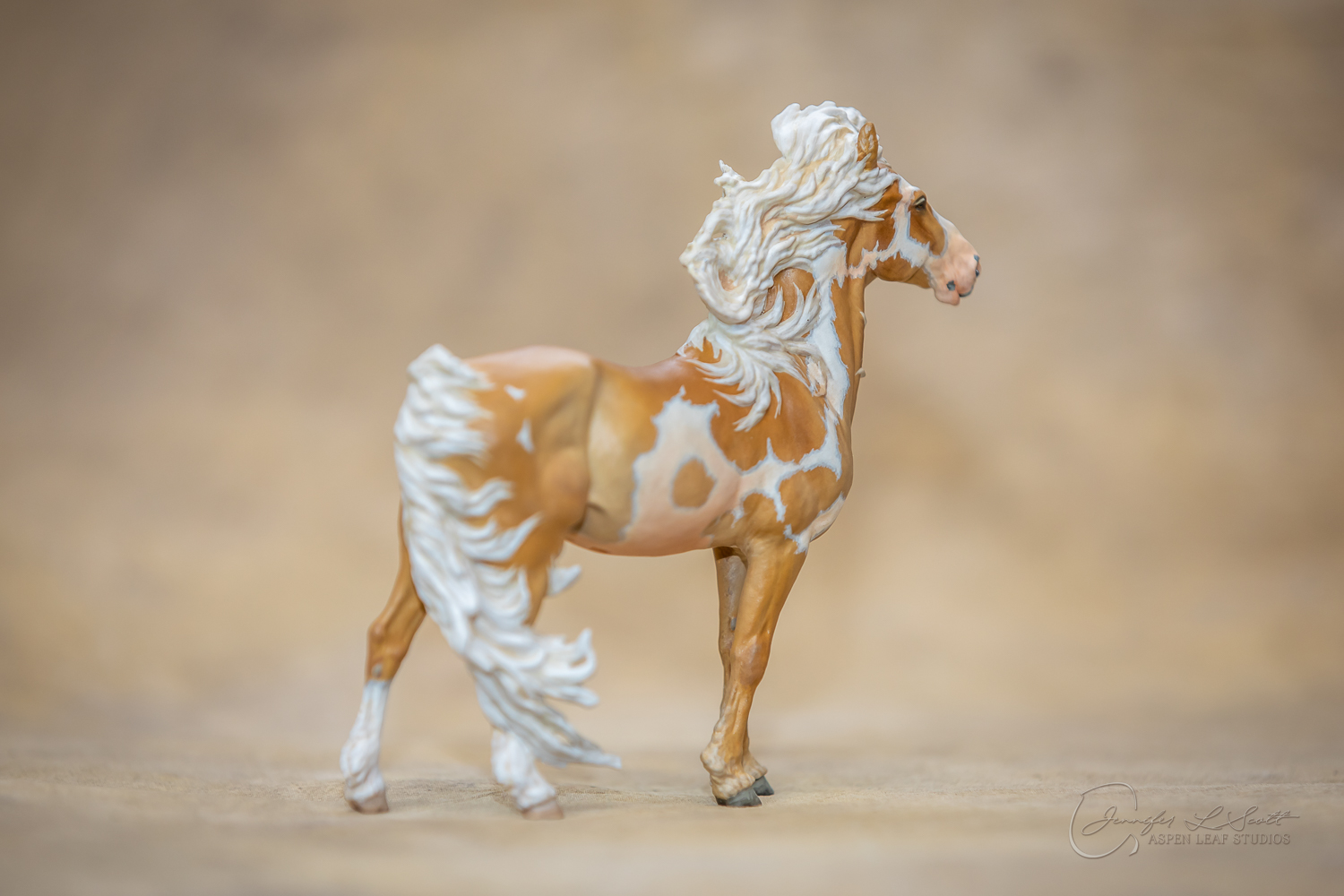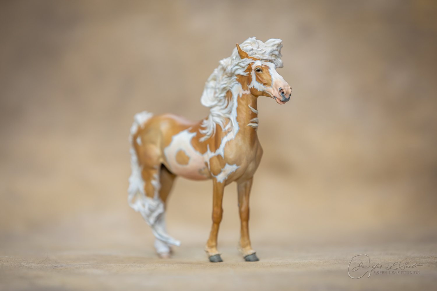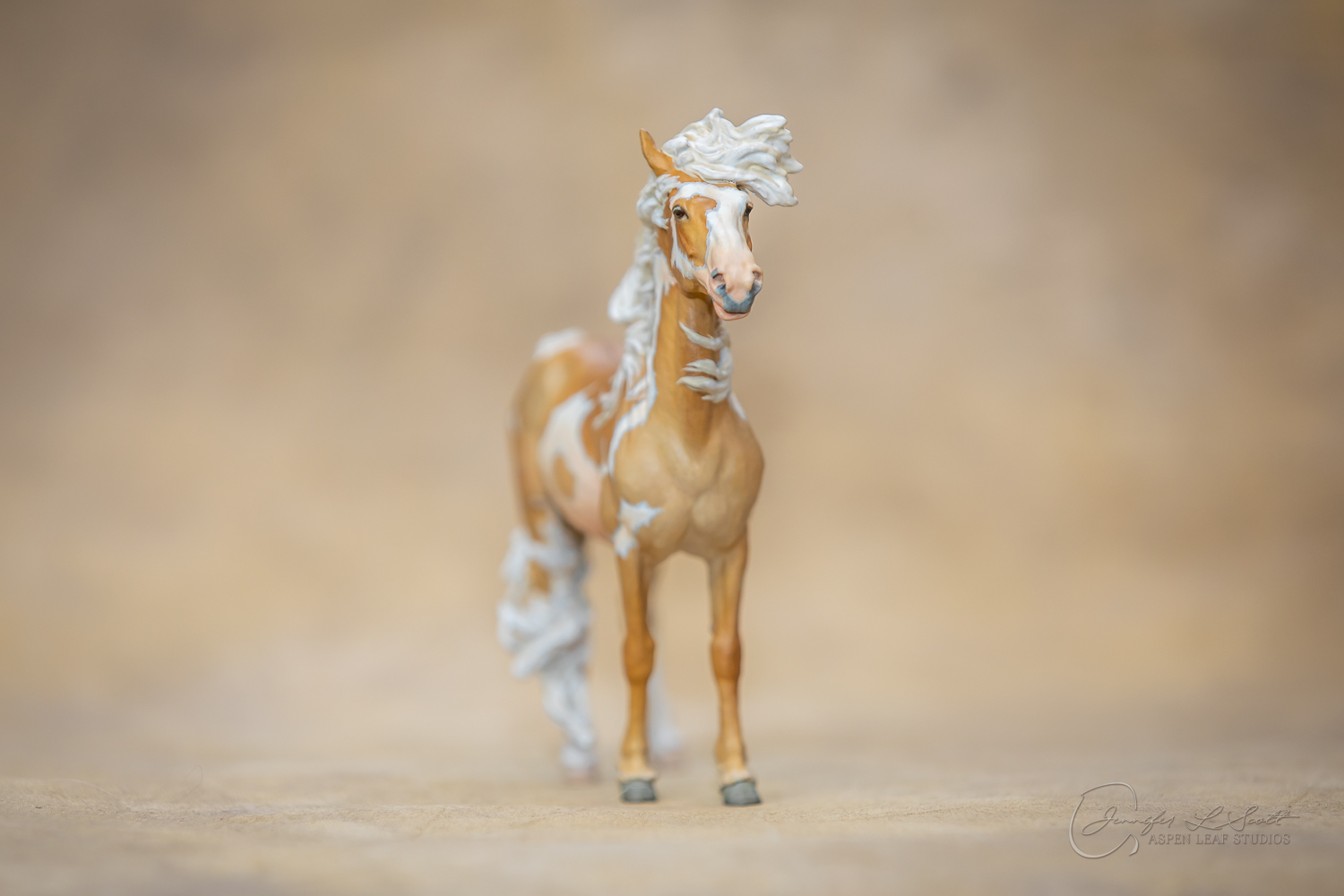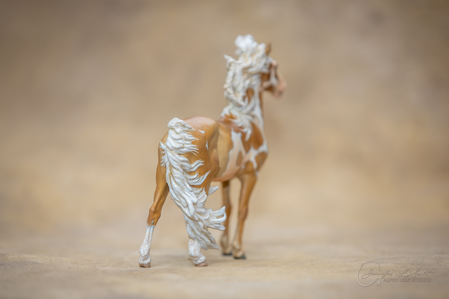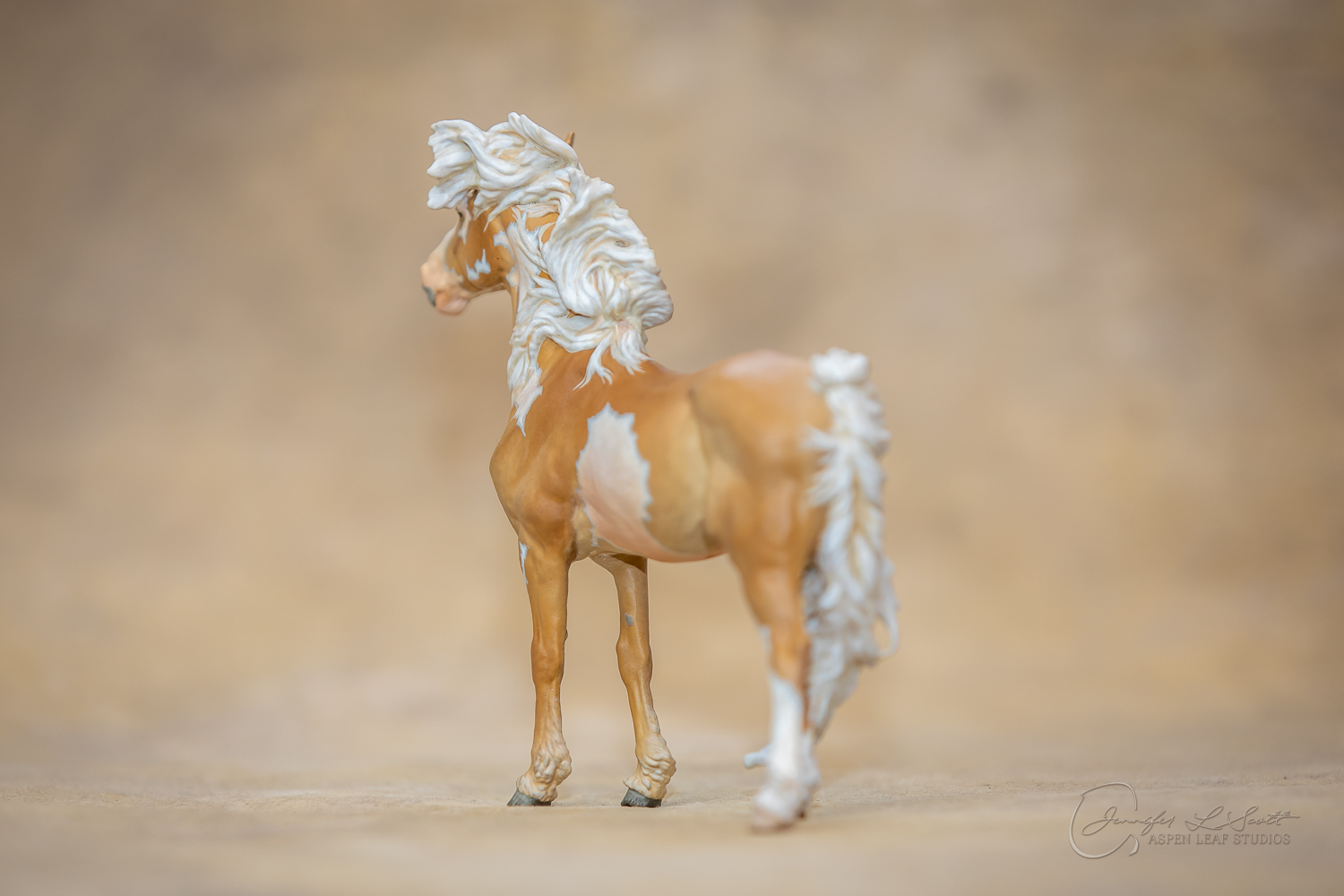 Venti Scale "Whirlwind" resin by Sarah Minkiewicz-Breunig painted palomino overo referencing Sand Wash Basin mustang stallion Meteor in 2025.
