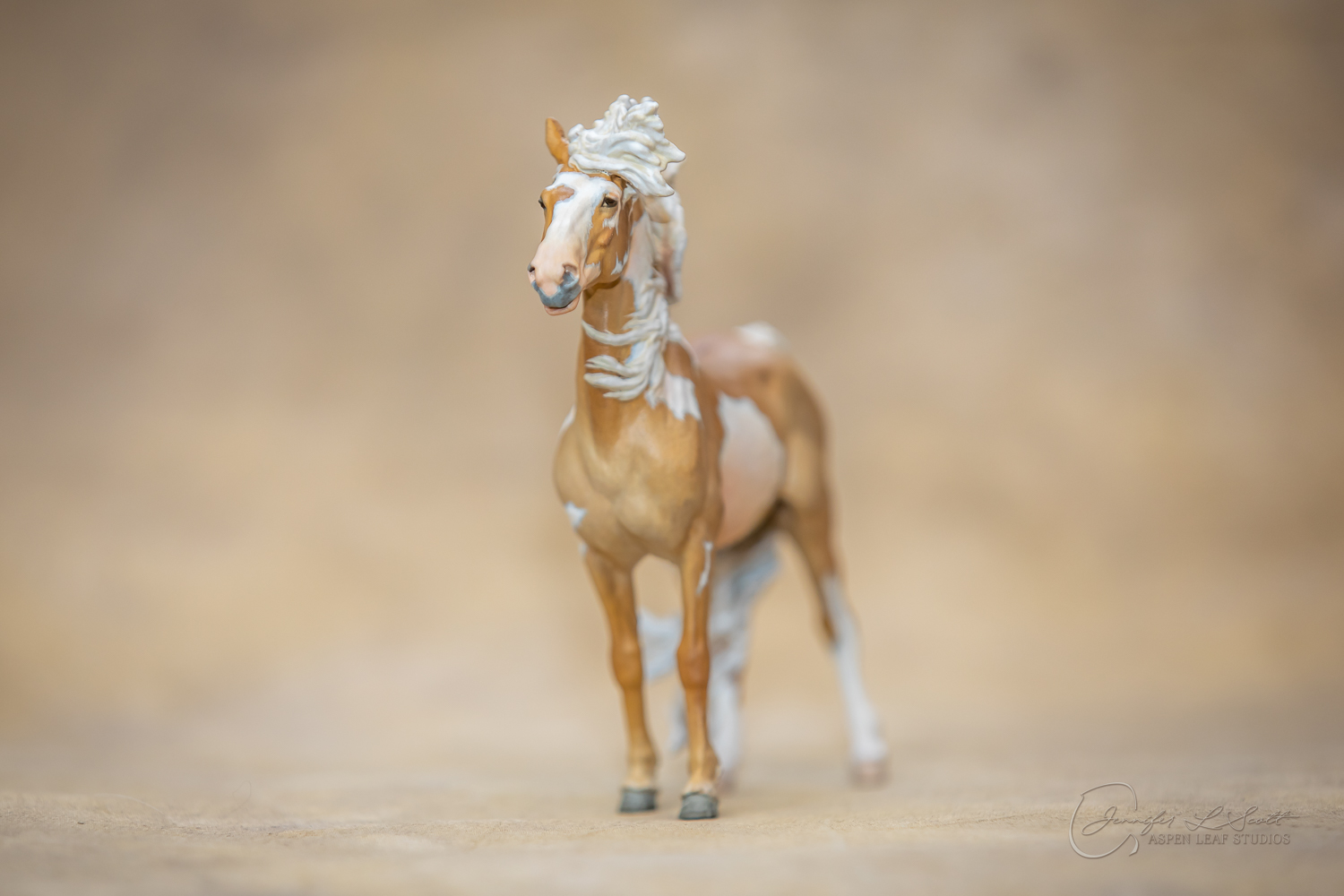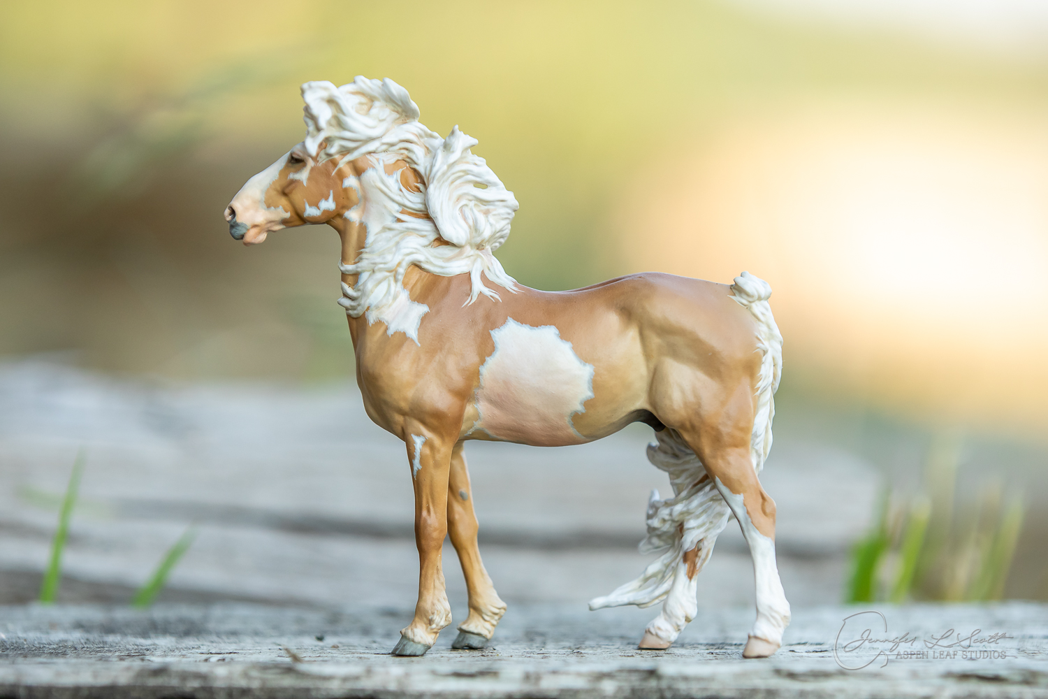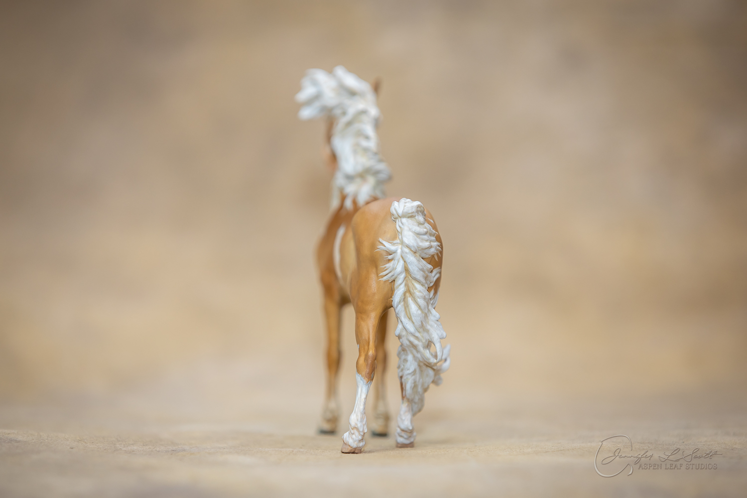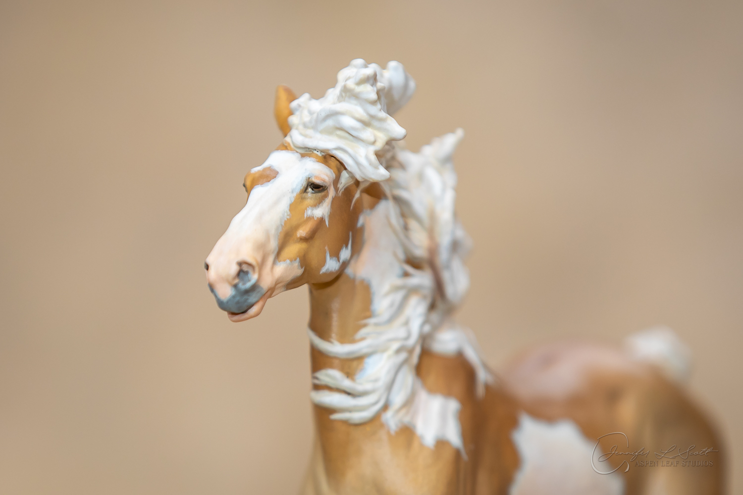 Venti Scale "Whirlwind" resin by Sarah Minkiewicz-Breunig painted palomino overo referencing Sand Wash Basin mustang stallion Meteor in 2025.