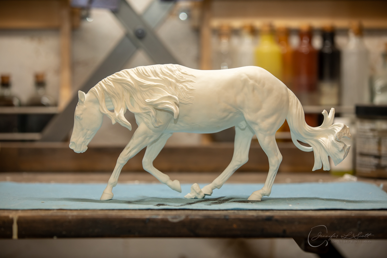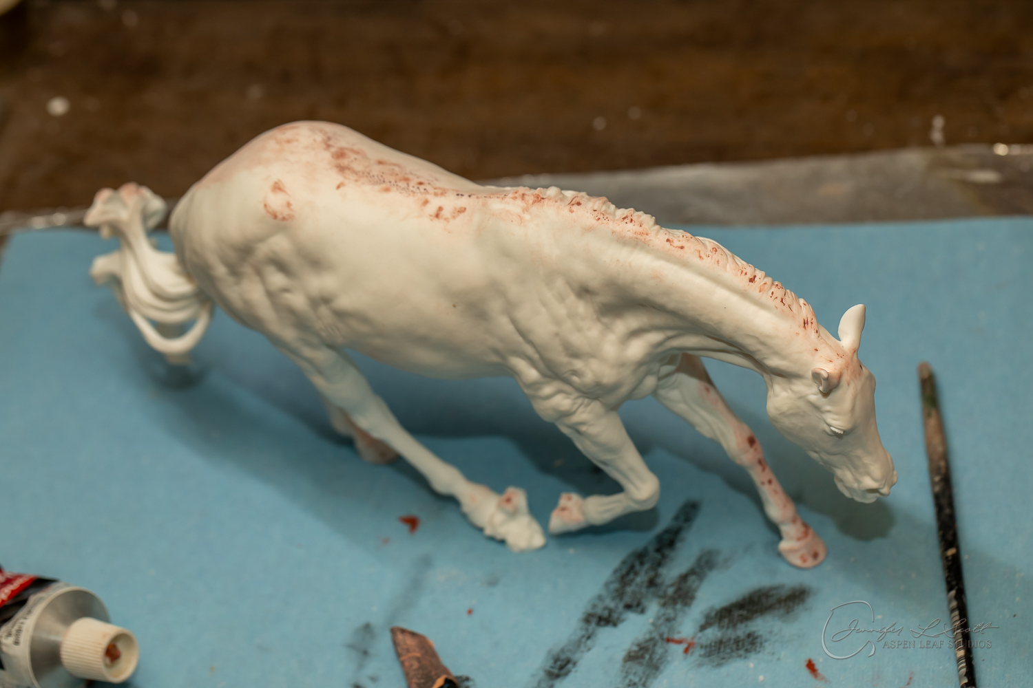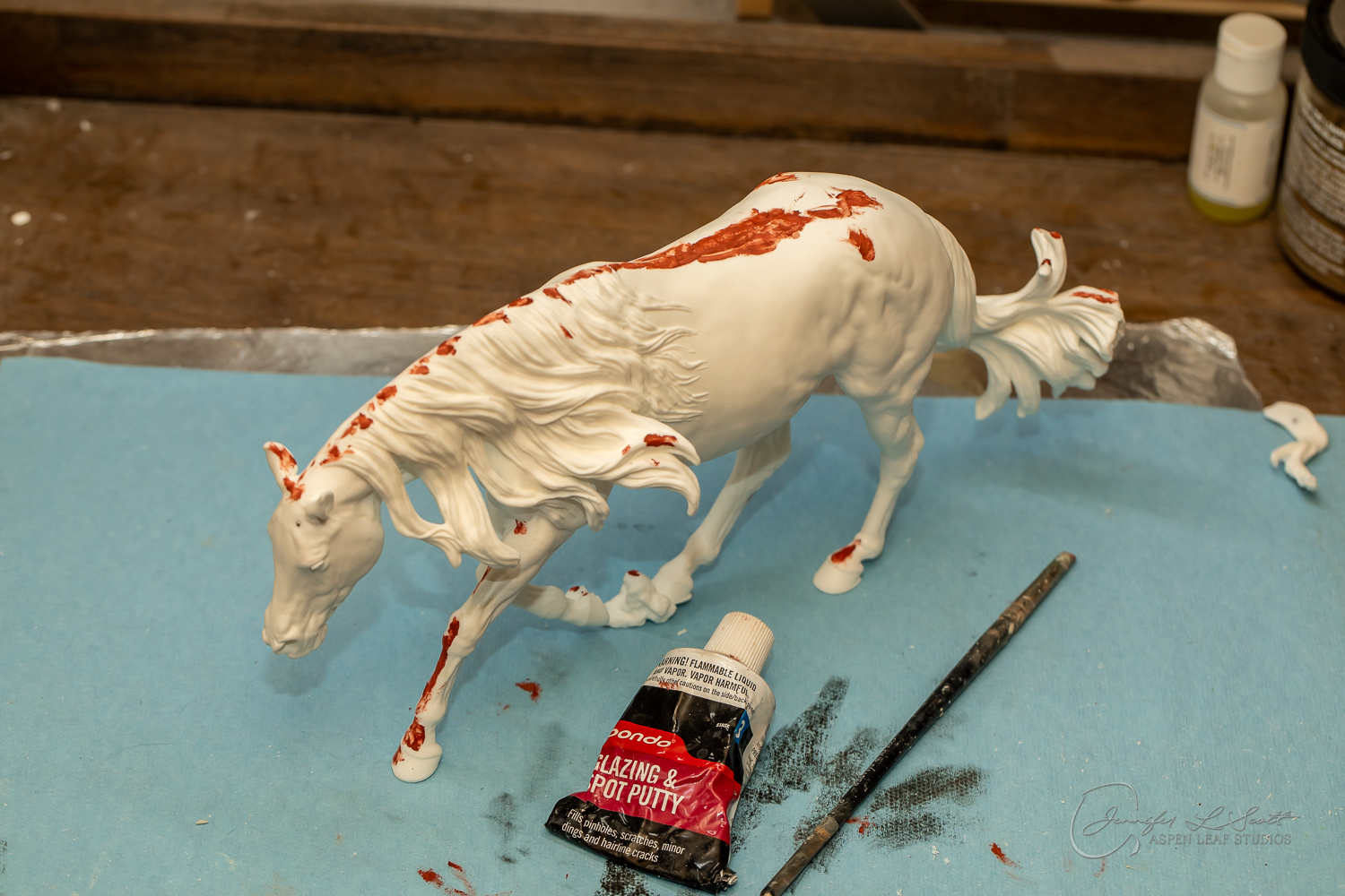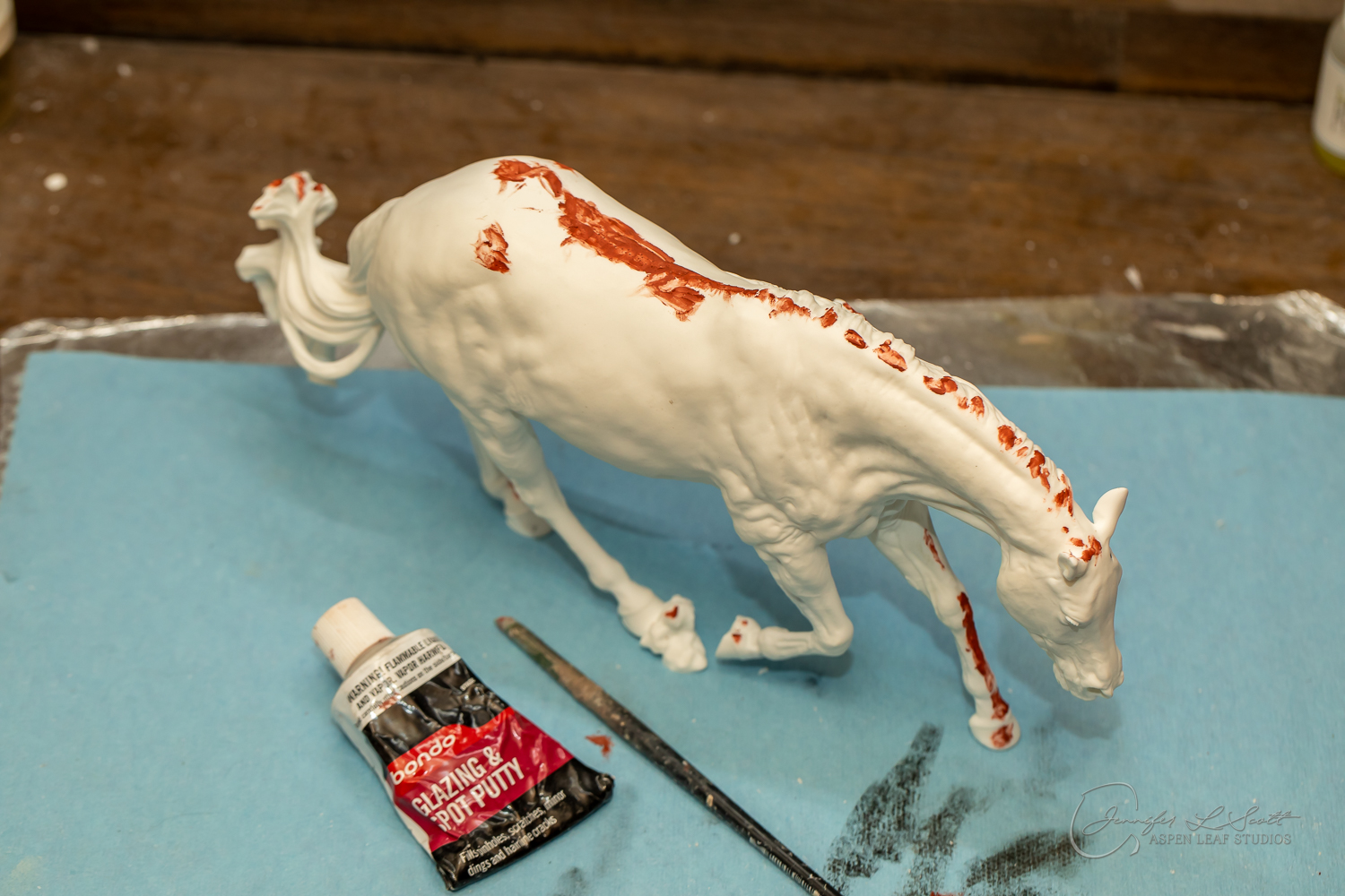 The Stetson I'll be using as my demonstration model here is a second quality cast, which just means there were things about him that didn't make him absolutely perfect and thus a first quality piece. While your cast is unlikely to need as much attention, it was a great example to use of how even a horse like this only takes a few more minutes of labor and can be easily readied for painting too. The amount of surface fill required for this guy was the biggest reason he didn't make the cut (see all the grayish/off-white spots? That's an epoxy clay - in this case Apoxy Sculpt, used to fill the majority of the air bubbles. Using the right product will make this a snap.