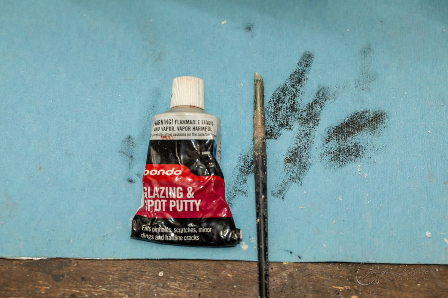 - Softer more easily "smear-able" products like Modeling Paste, Citadel Green Stuff, and Bondo Spot Putty work best for small fill zones. These are much more liquid-esque compared to the more clay feel of the epoxy clay and can be smooshed into those tiny little holes so much more easily. Each of these products has an area they're best in. For pinhole fill I love the Bondo the best. It's easy to smear around quickly, dries firm in around 30 minutes or so, and sands really nicely. Many people don't care for the smell though. Modeling paste is a nice alternative, but is a little harder to work with and the edges tend to flake off rather than sand smooth. I like to use my fingers for this one. Spot apply a little and then gently spread in a circular motion in the fill area needed. Modeling paste does dry to a workable stage faster, but it takes a day to really set. I feel it actually takes several days to a week to really reach the rock hard state though. Citadel Green stuff is a great filler as well and is probably my second favorite from Bondo. It does do a great job on the pinholes too and has slightly more "shaping" ability for those hilly mane/tail areas via manipulation with water. It doesn't have an odor either. It does have a higher shrinkage rate though so I find myself having to do multiple layers or really piling it on for sanding down later. It also has a fast drying time of around 5-10 minutes. Of course drying time will vary for all three of these products as it'll depend on how thick or thinly they were applied.
