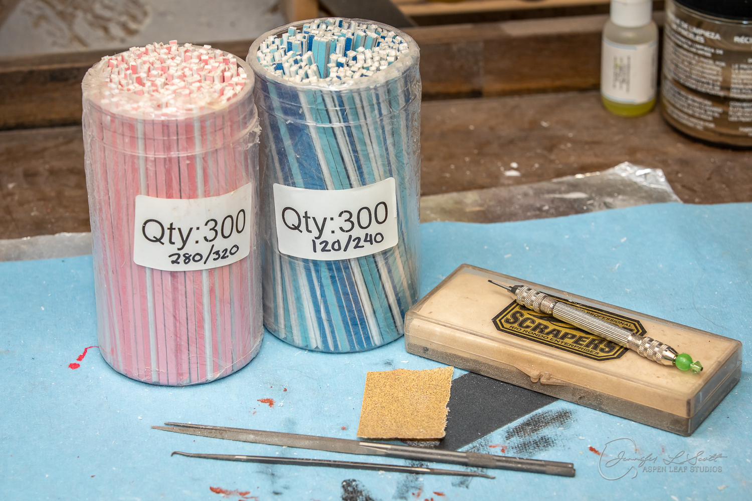 Files. Files are really nice for quickly edging things like the mane where there are many curves and not a straight flat area to sand. Flat/triangular files are great for the tight creases and round files are great for those softer dips. You can get some really fun shaped tips for those super hard to work areas too. I love the shepherd's crook! Files tend to sand off things fast though so be prepared to have marks you'll need to lightly sand after. I believe they do make different grits for the files so if you have the extra spending money, you can buy as many as you'd like.