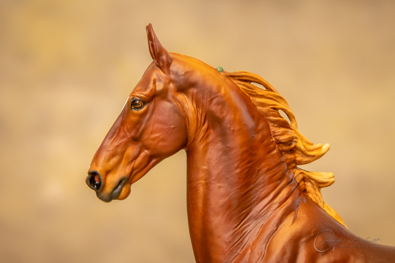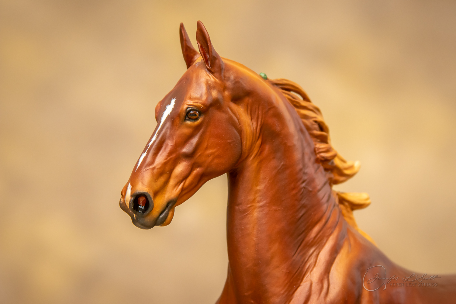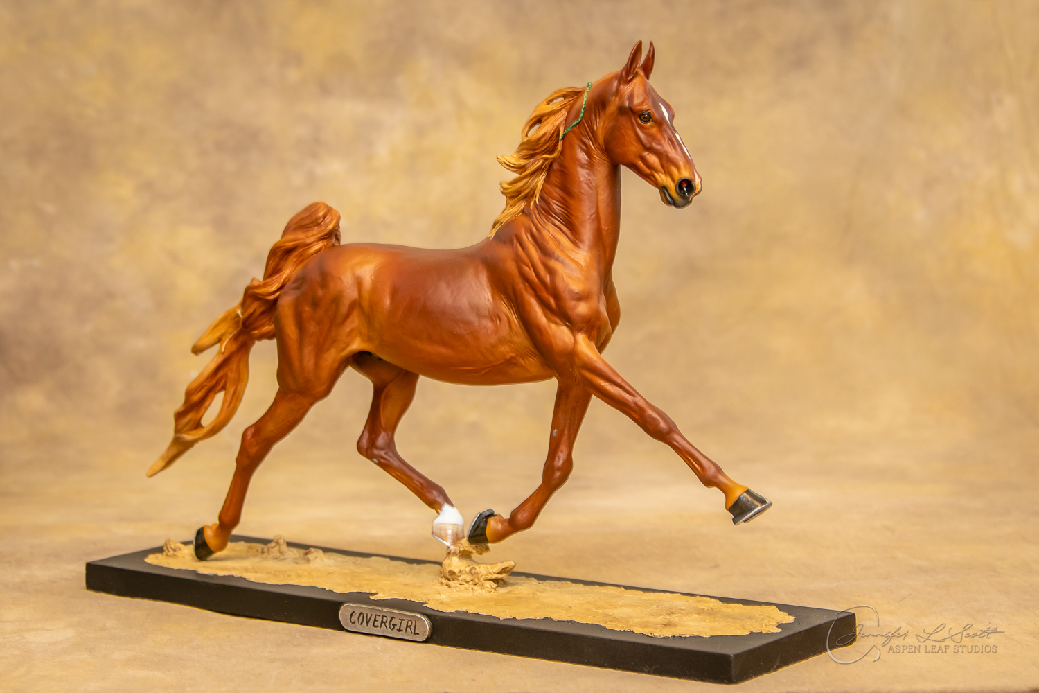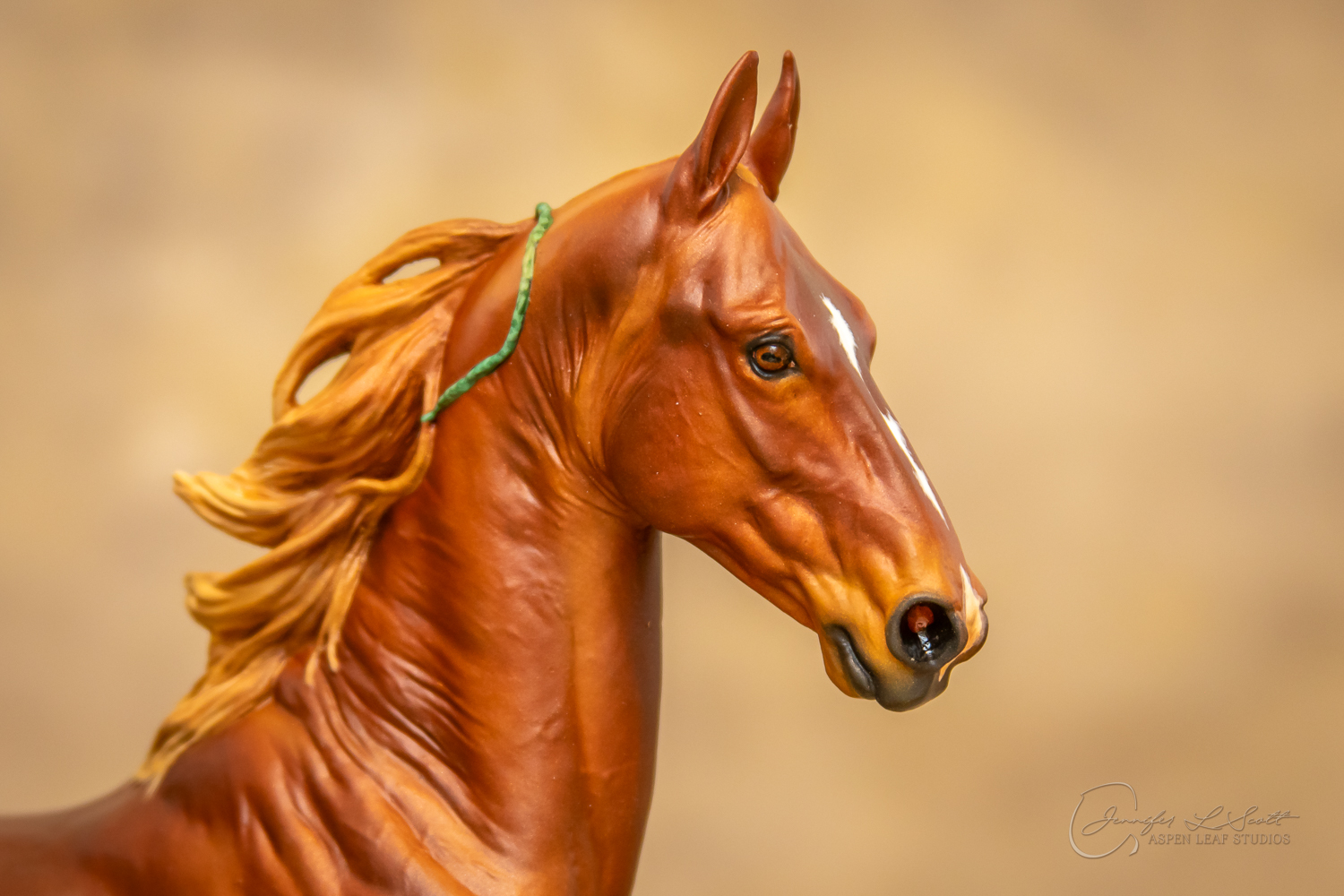 Painted standard chestnut with a green and yellow ribbon in 2017.