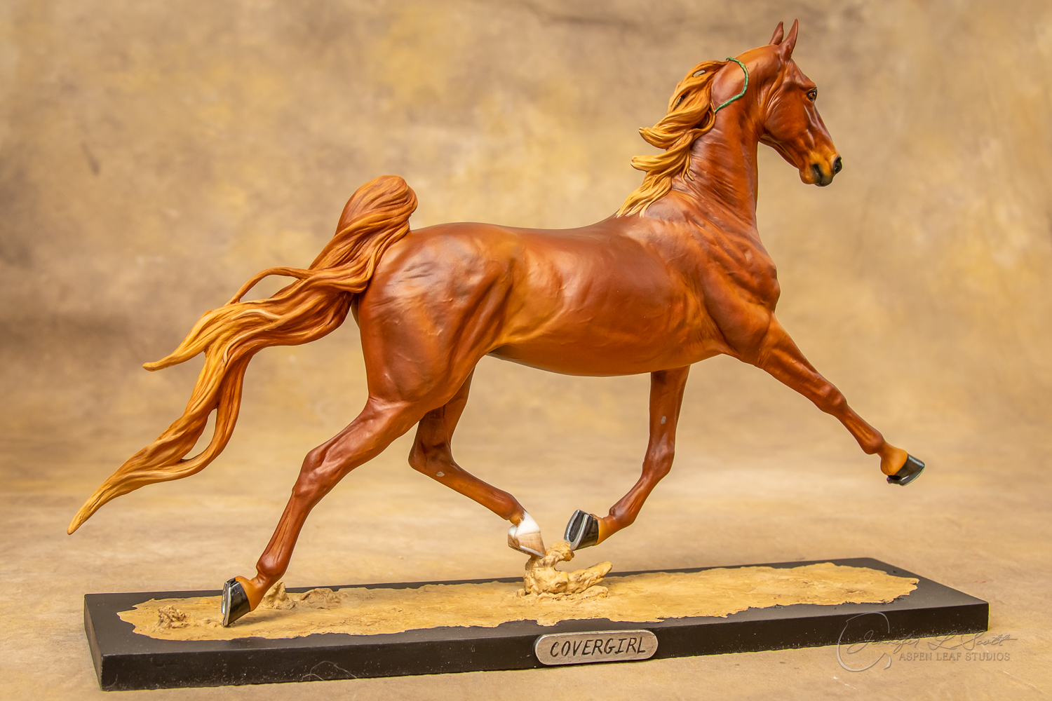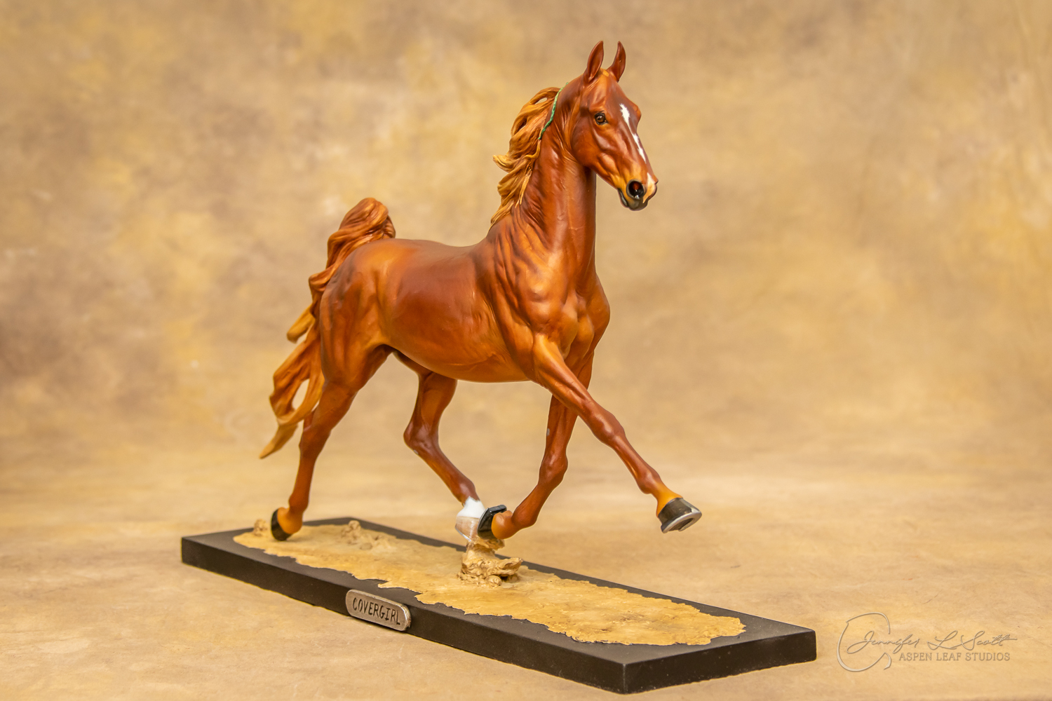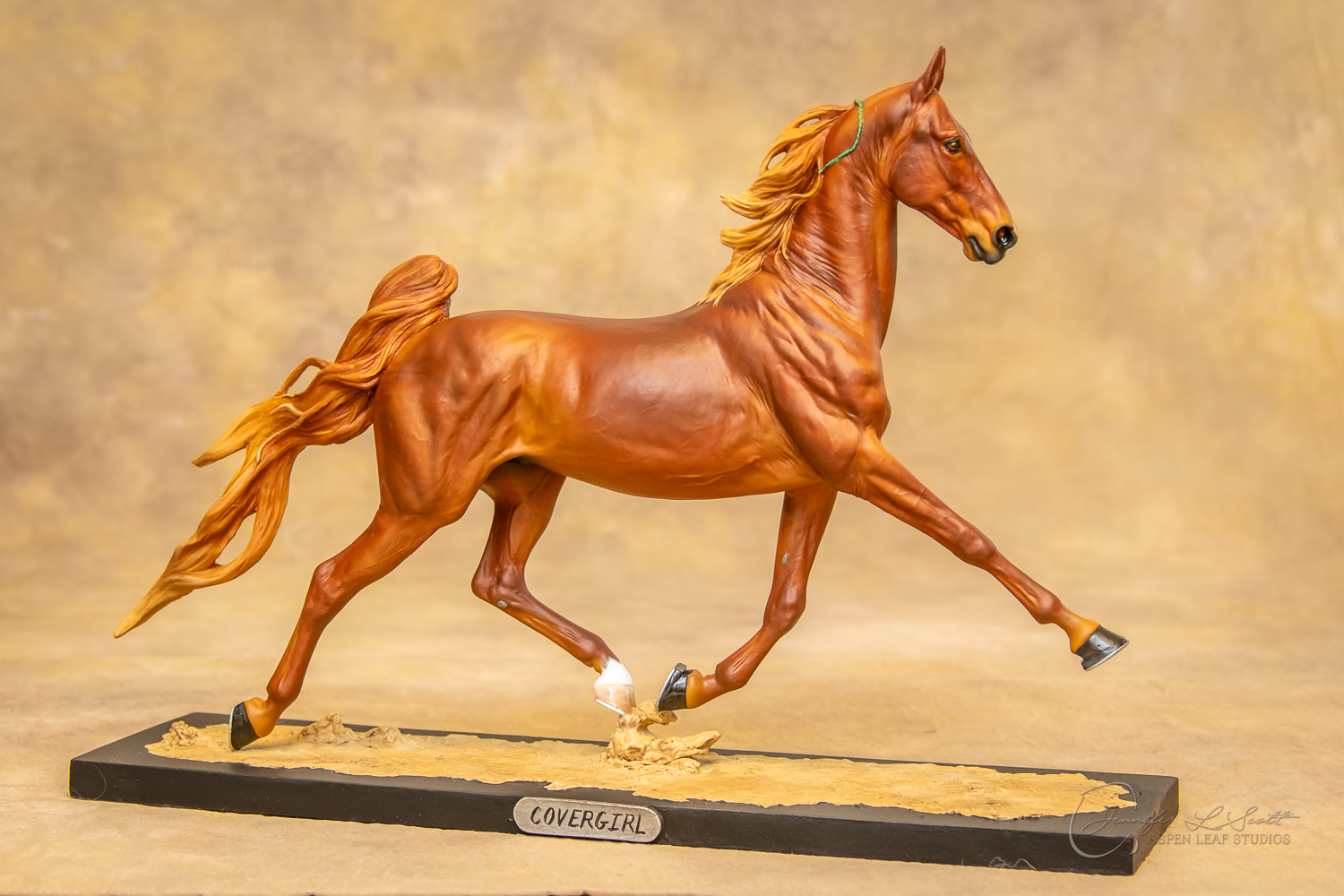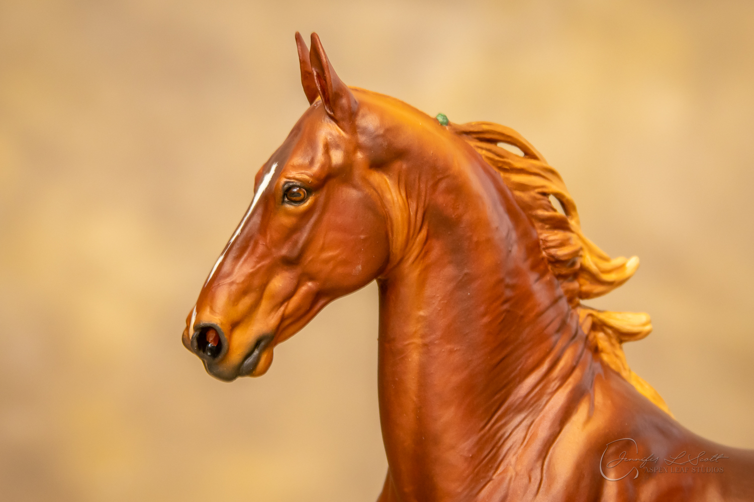 Painted standard chestnut with a green and yellow ribbon in 2017.