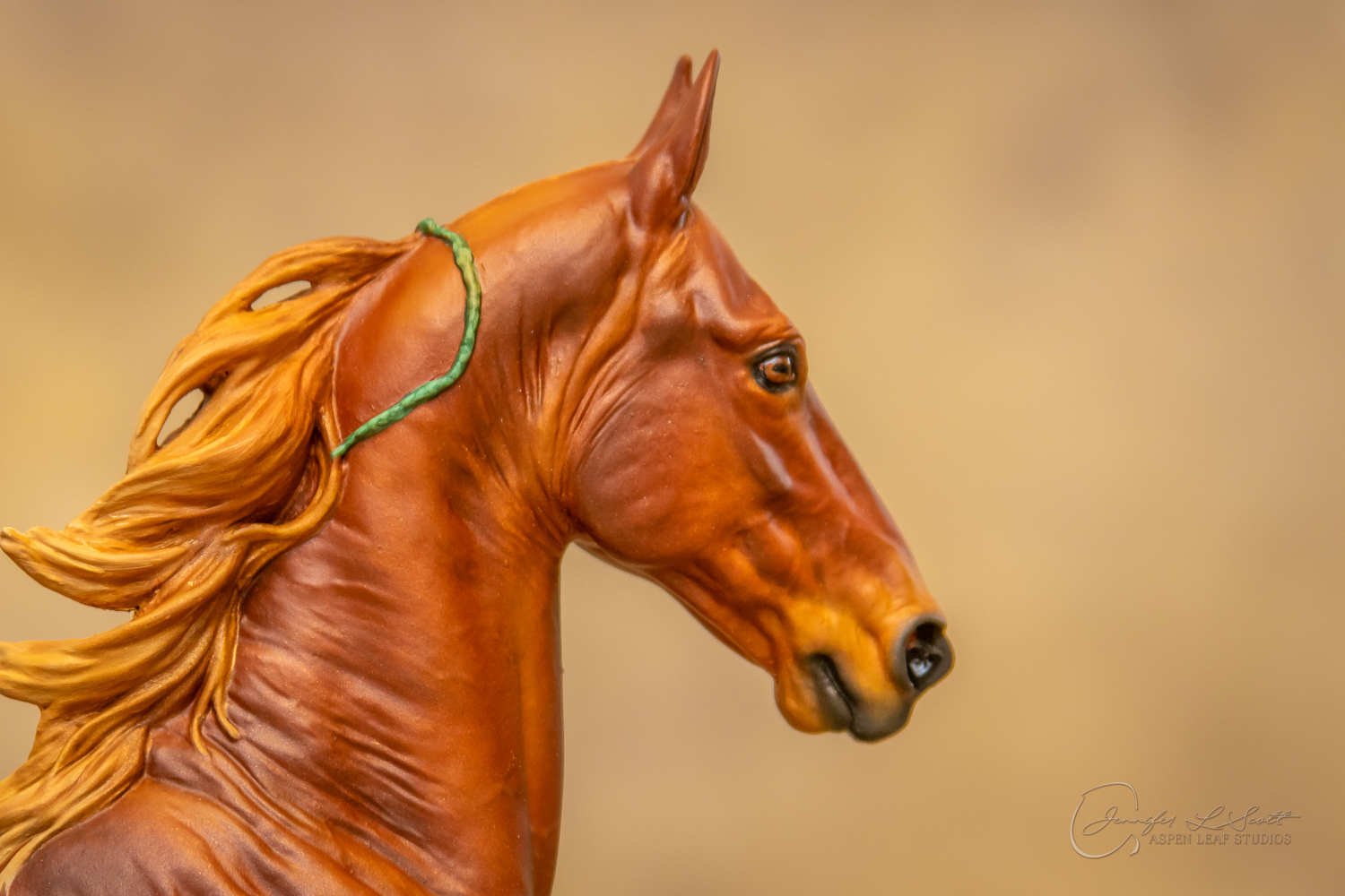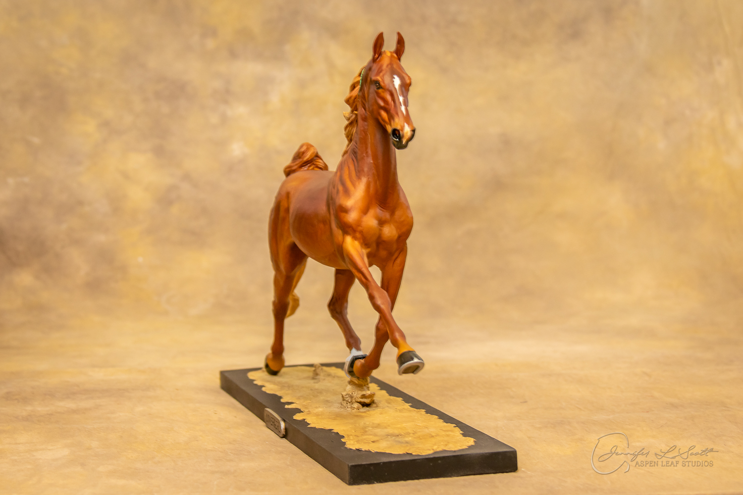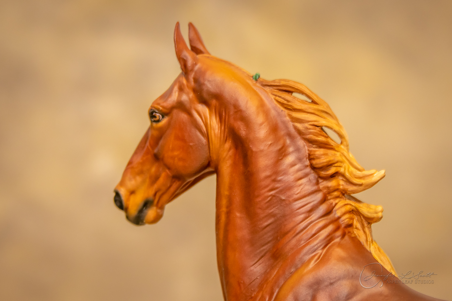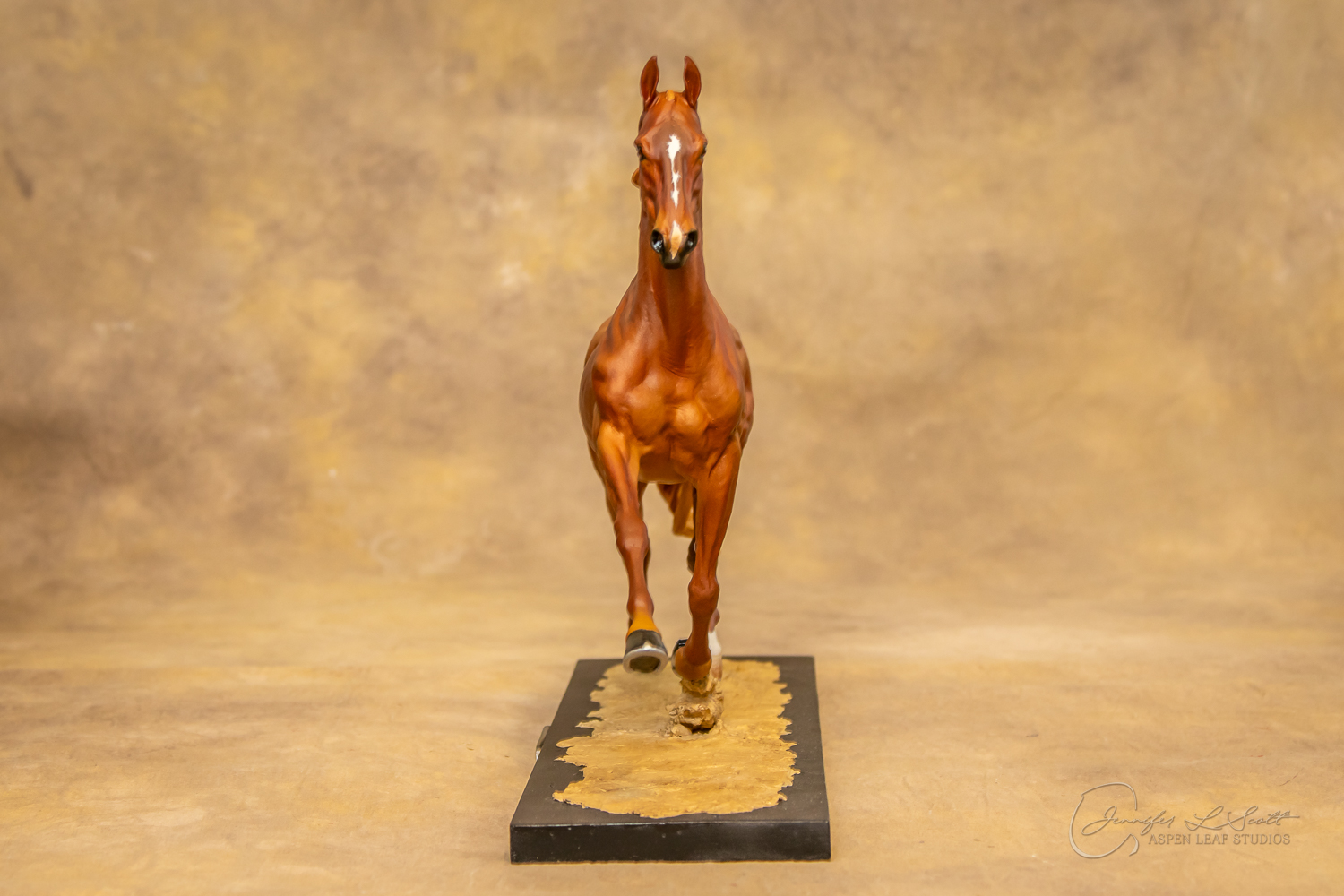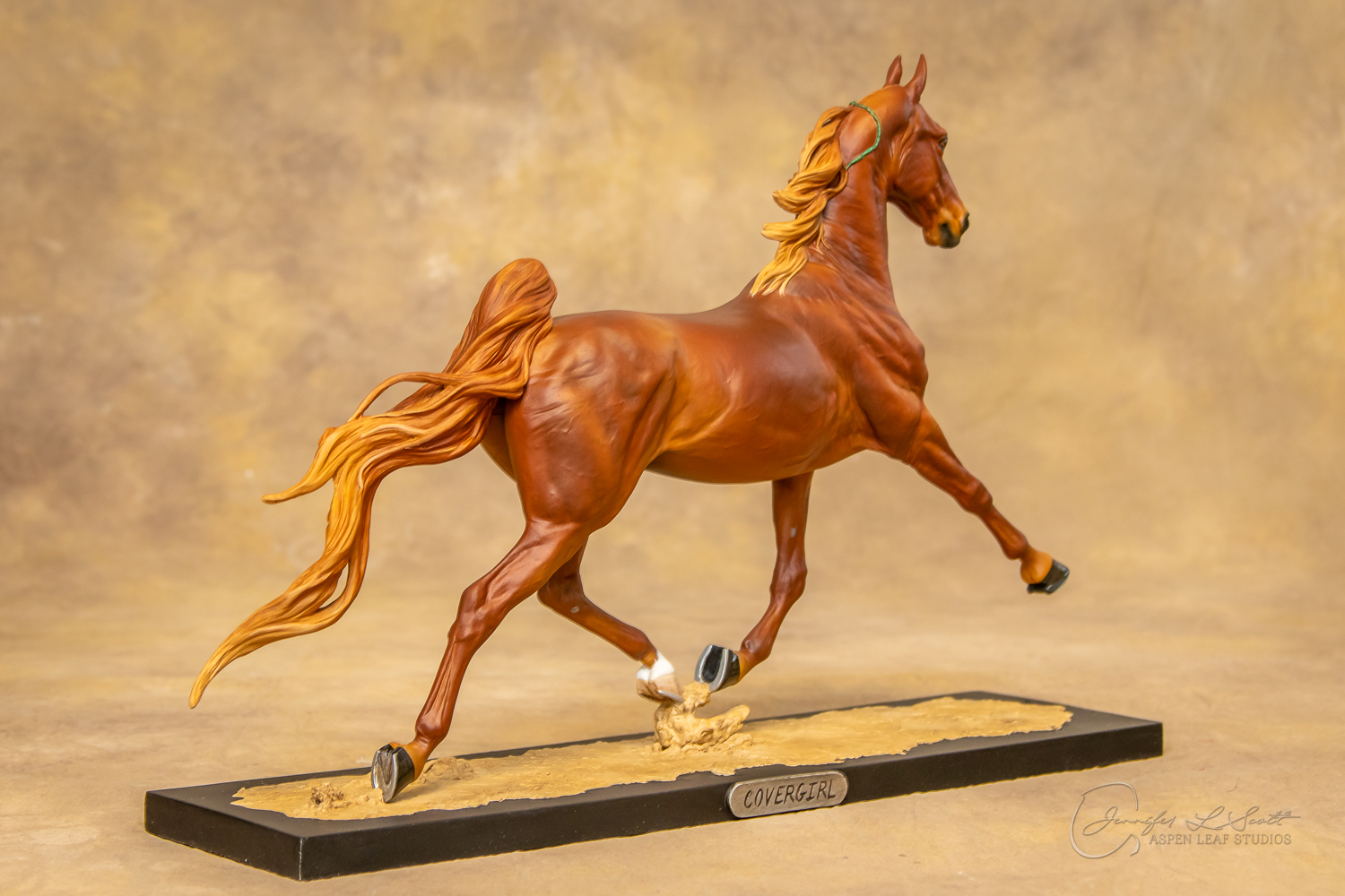 Painted standard chestnut with a green and yellow ribbon in 2017.