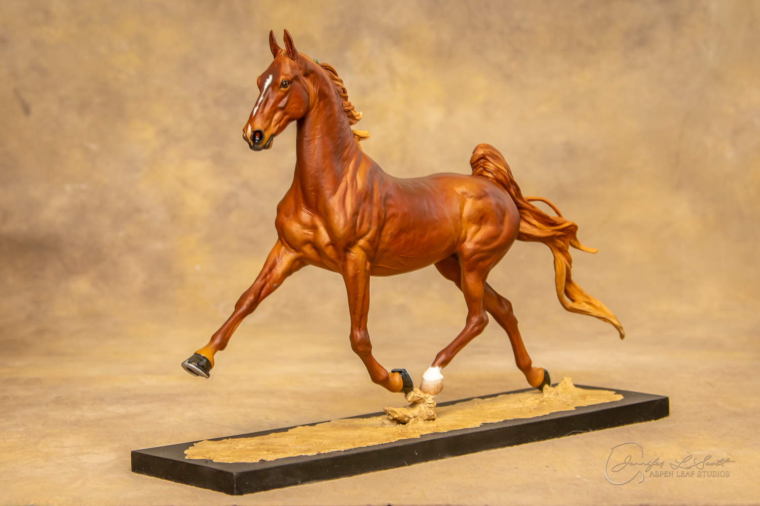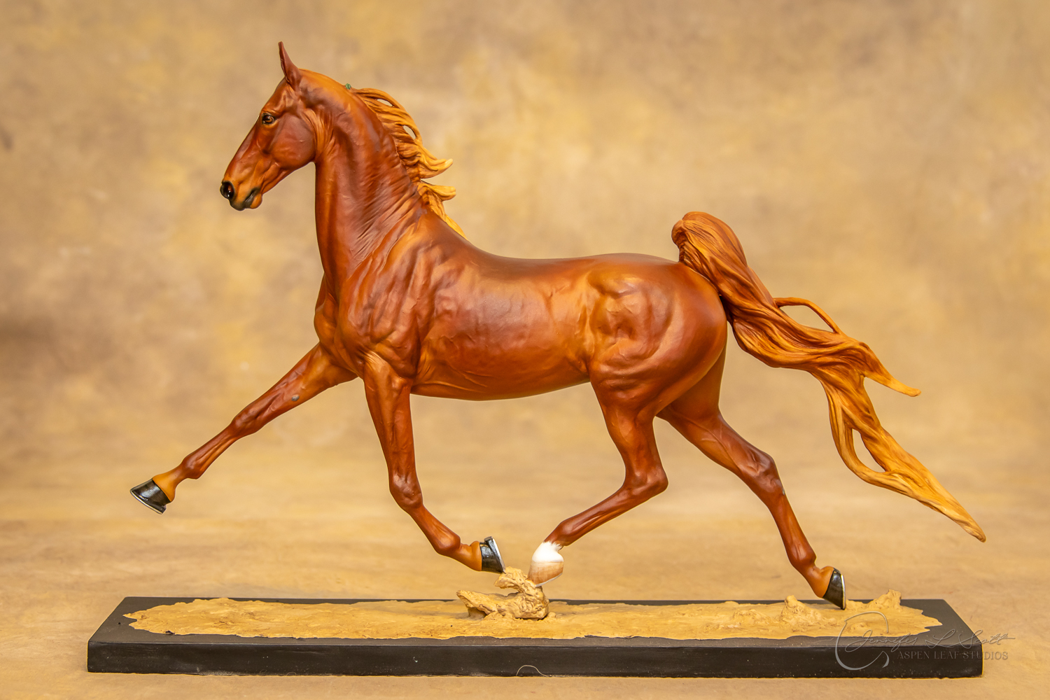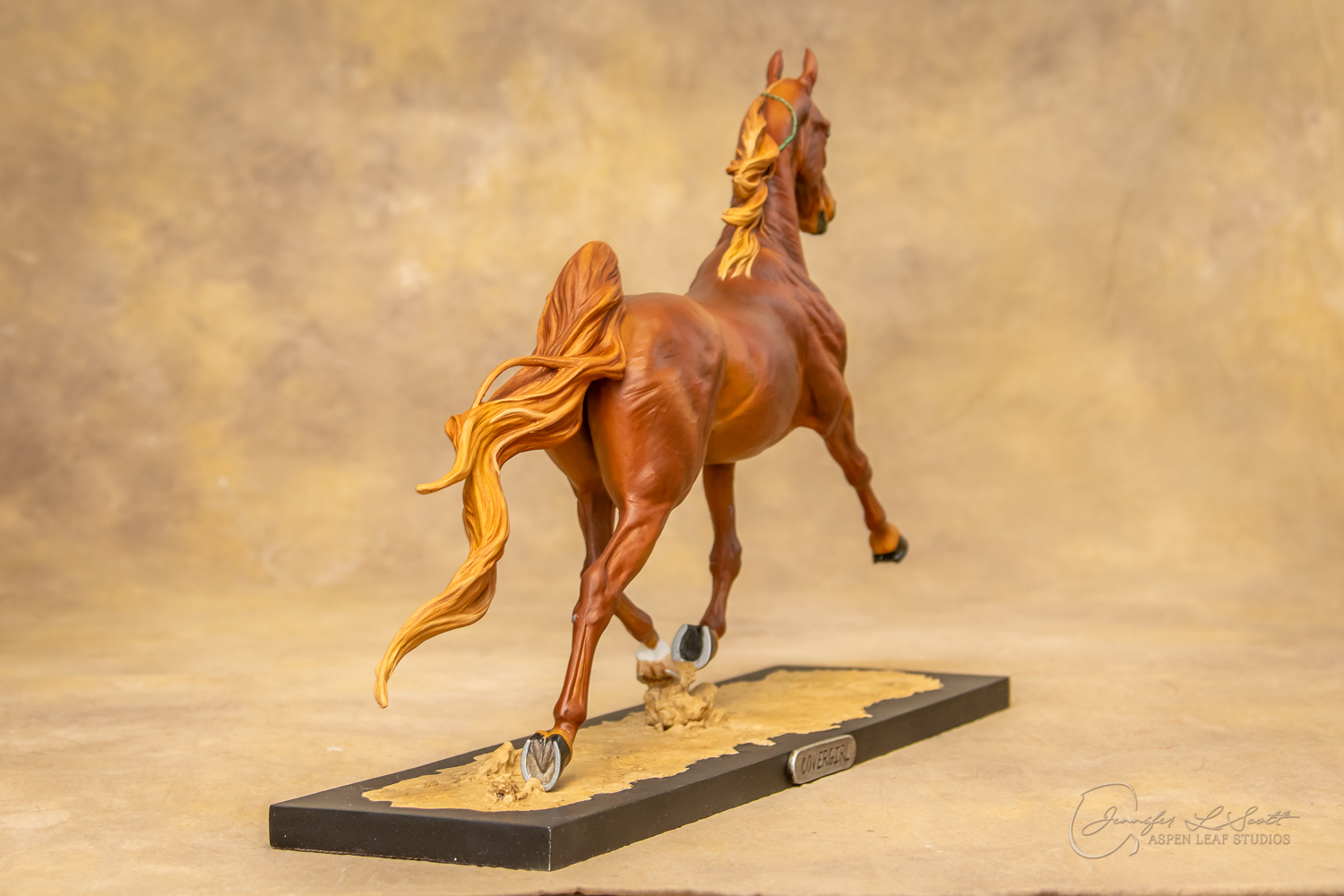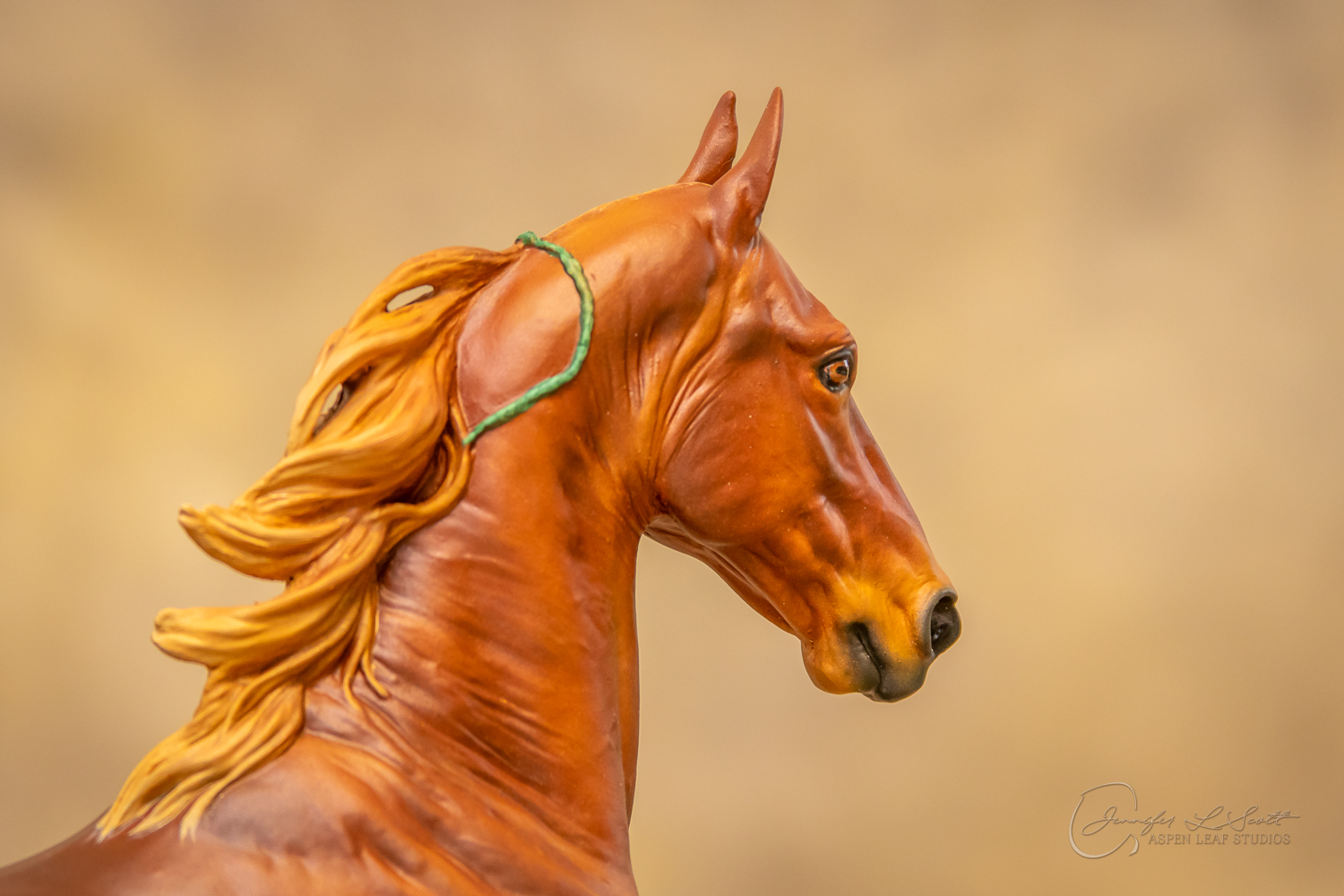 Painted standard chestnut with a green and yellow ribbon in 2017.