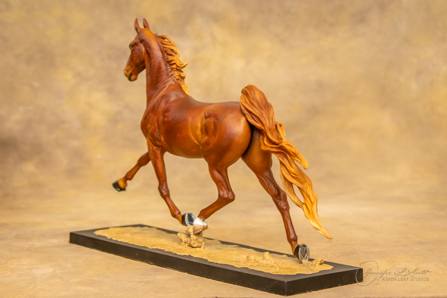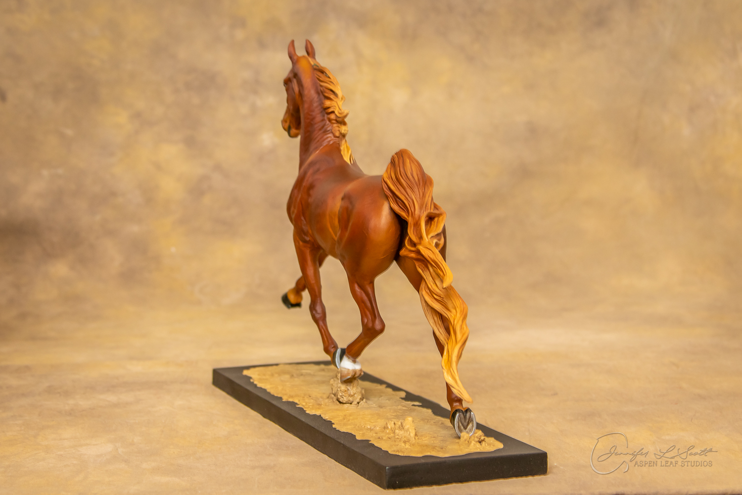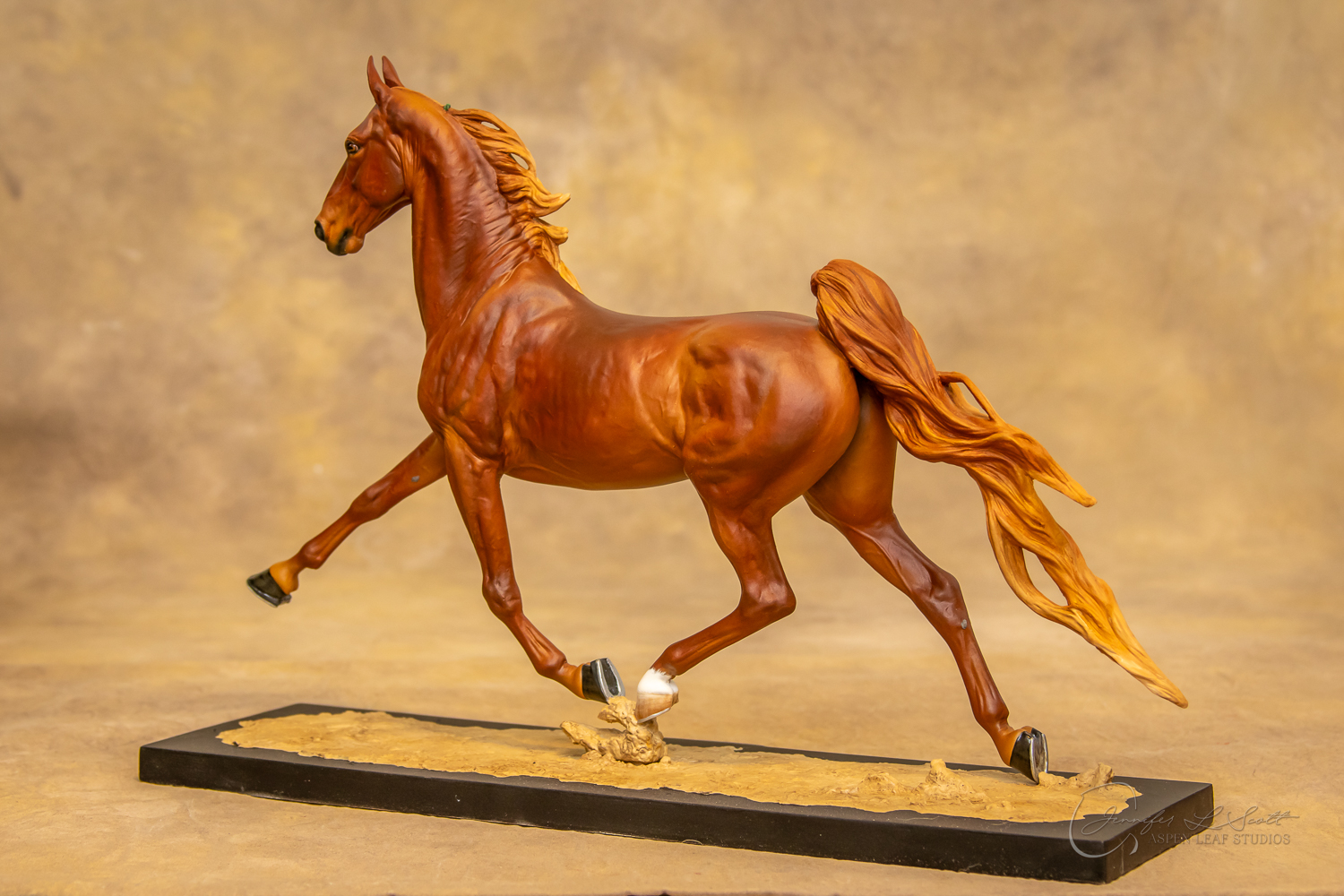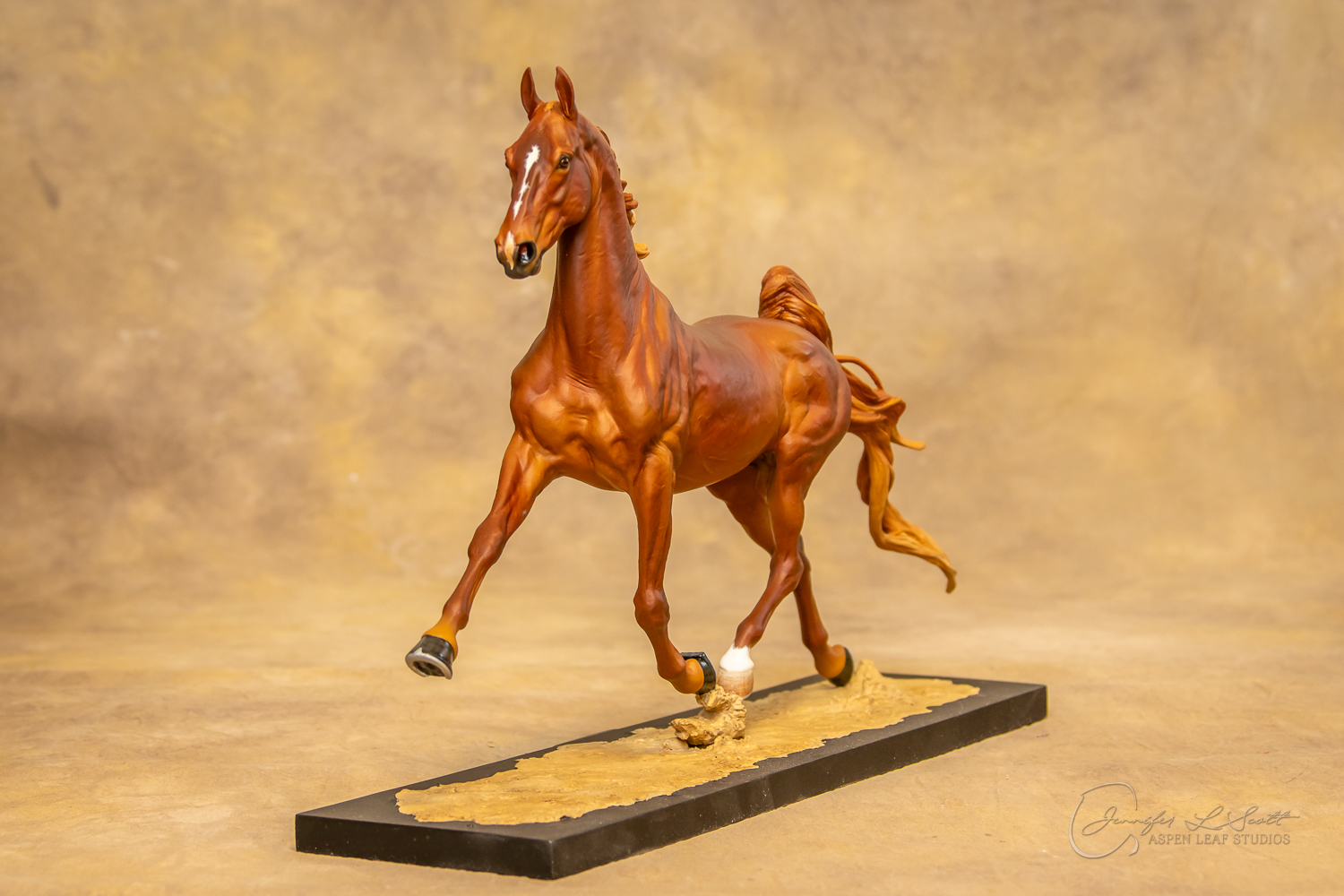 Painted standard chestnut with a green and yellow ribbon in 2017.
