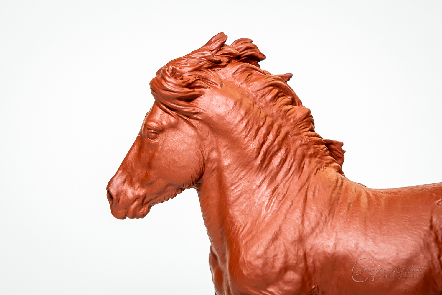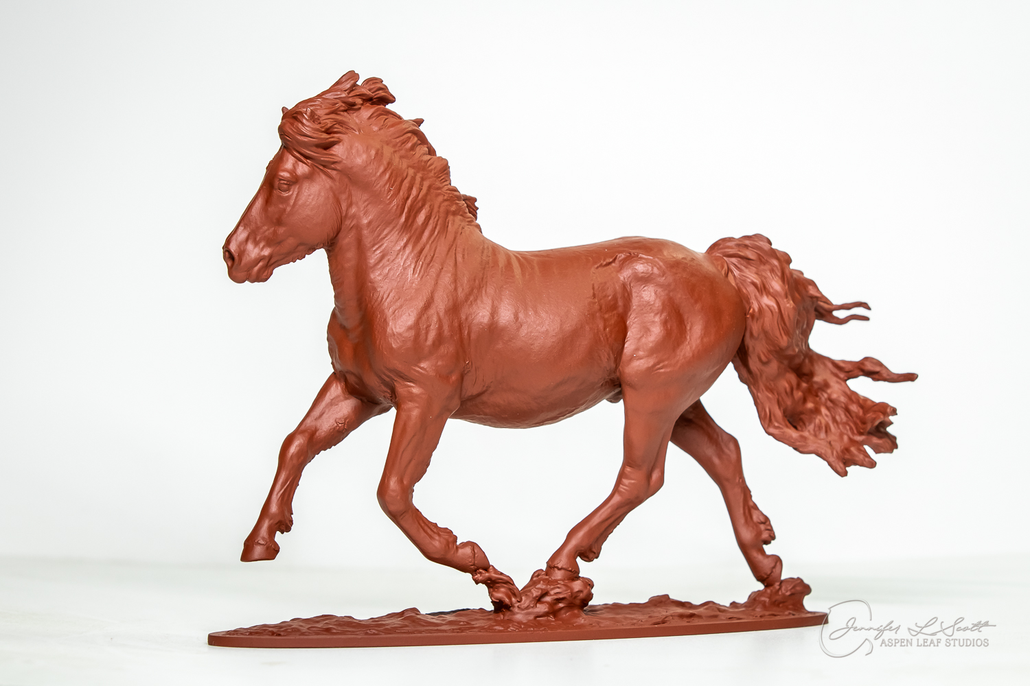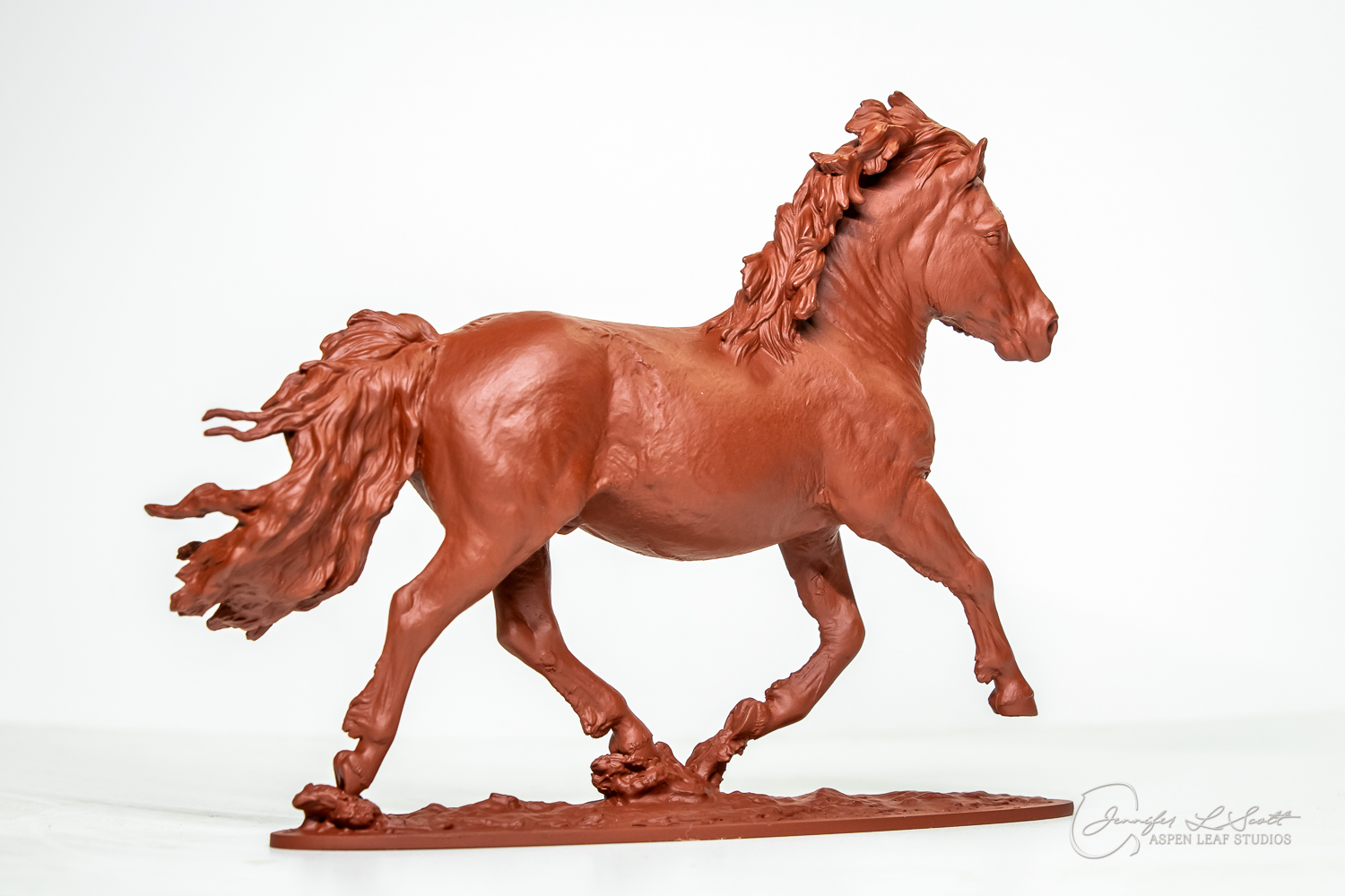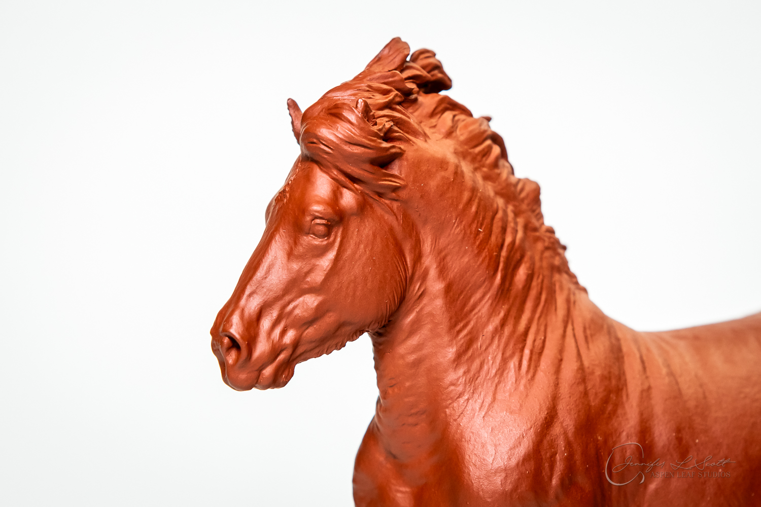 Like most of my work, Elton is smallish traditional scale and is a depiction of a British Shetland pony stallion. Jauntily trotting, he's the stout and hairy pony we all think of. You can just feel the mischief about to bubble forth. I love his semi-fluffy texture, which is interesting and yet not too much to make painting difficult.