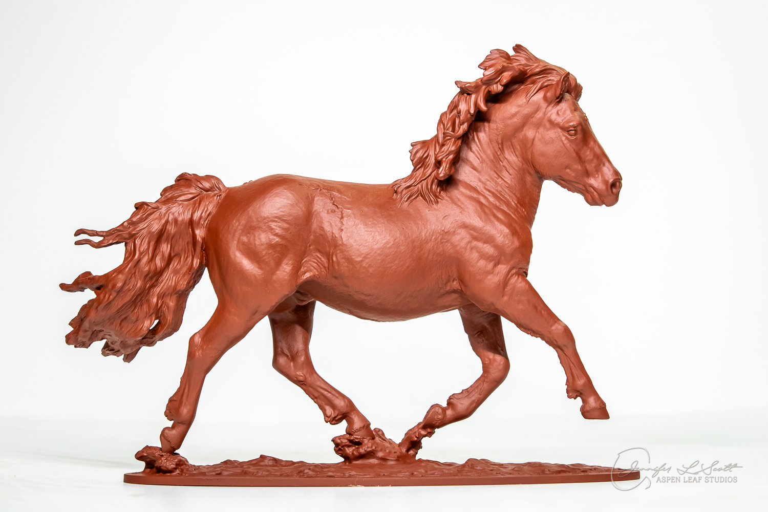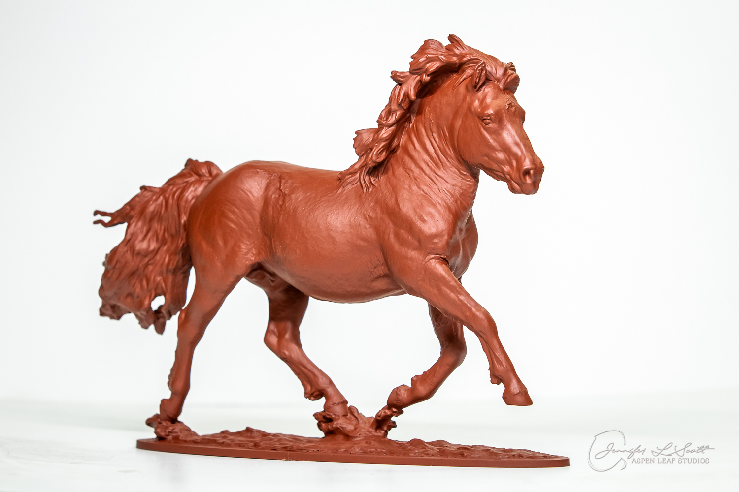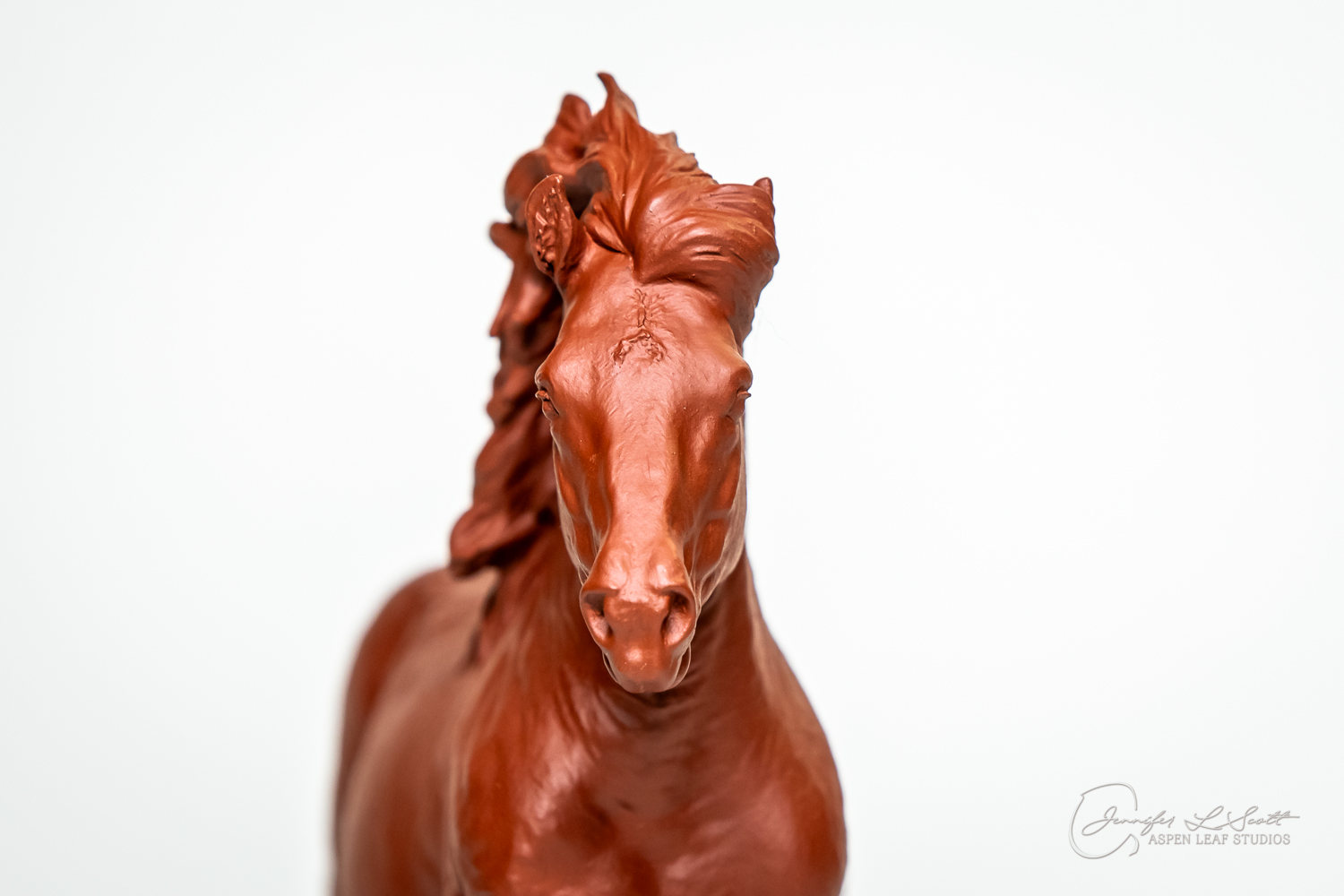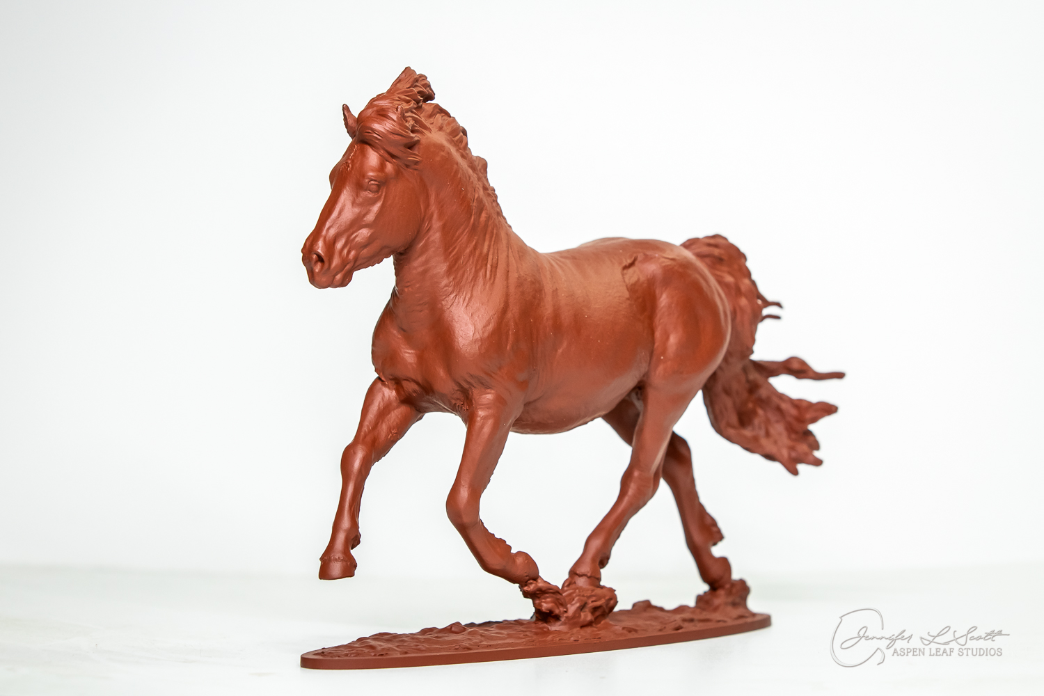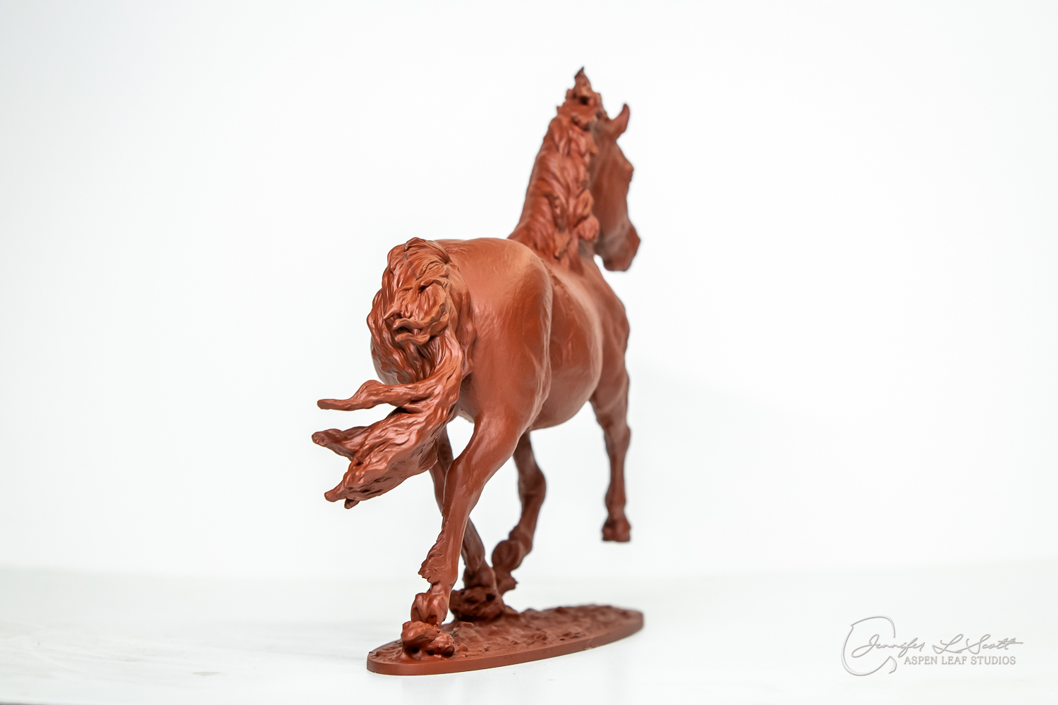 Like most of my work, Elton is smallish traditional scale and is a depiction of a British Shetland pony stallion. Jauntily trotting, he's the stout and hairy pony we all think of. You can just feel the mischief about to bubble forth. I love his semi-fluffy texture, which is interesting and yet not too much to make painting difficult.