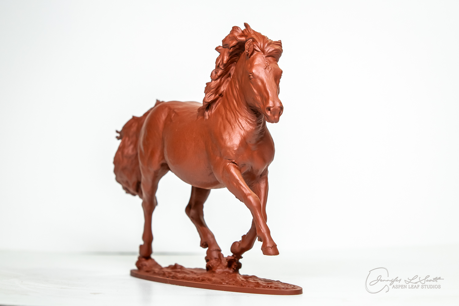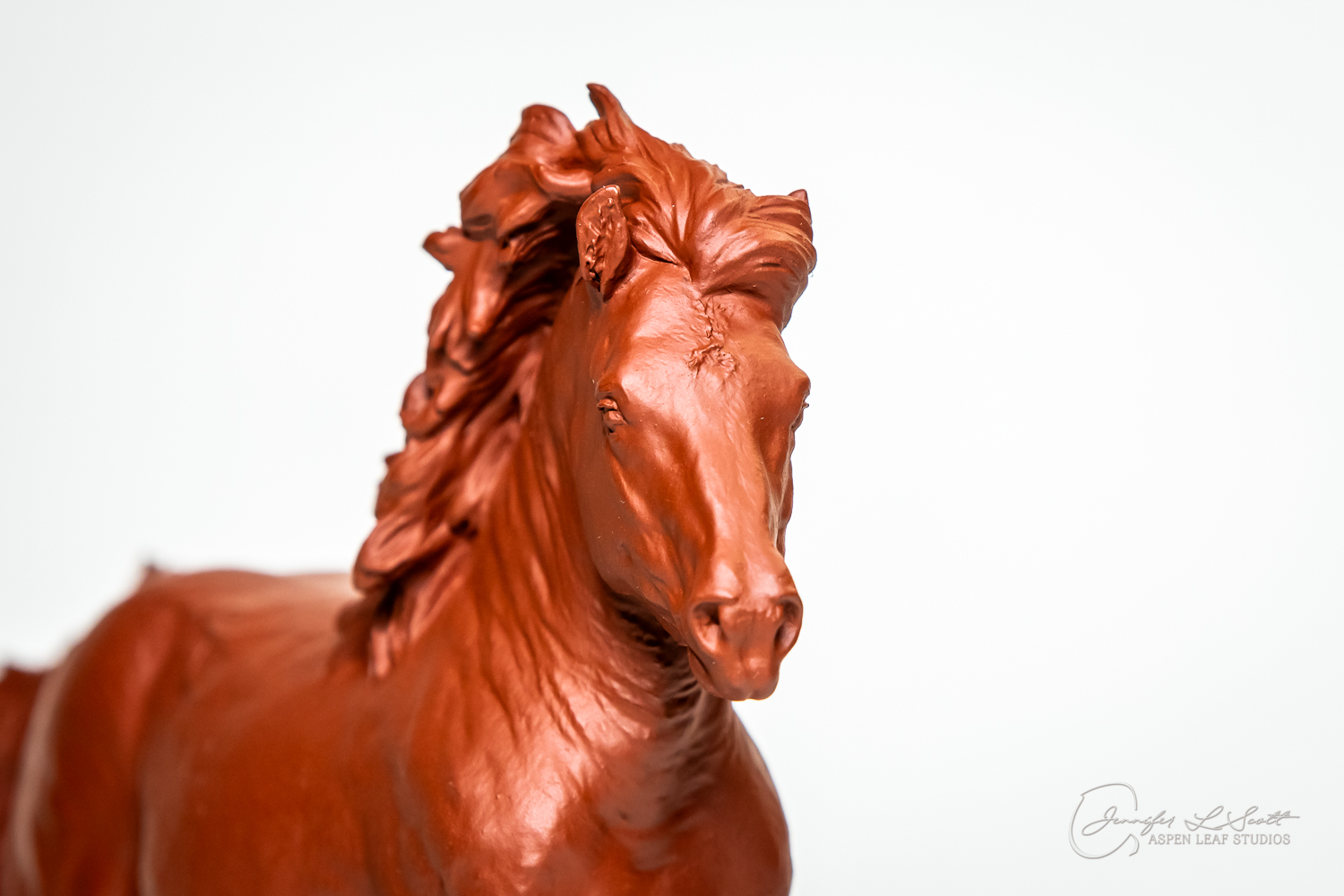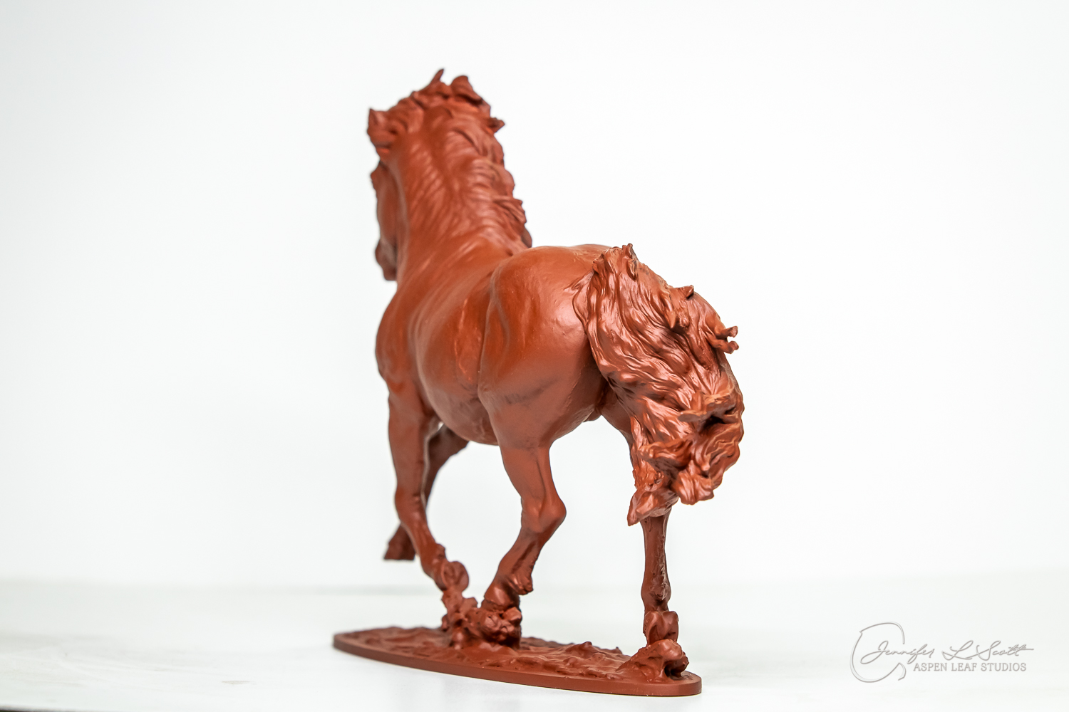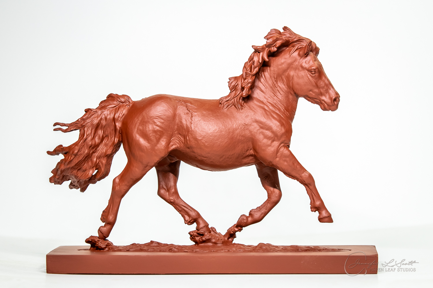 Like most of my work, Elton is smallish traditional scale and is a depiction of a British Shetland pony stallion. Jauntily trotting, he's the stout and hairy pony we all think of. You can just feel the mischief about to bubble forth. I love his semi-fluffy texture, which is interesting and yet not too much to make painting difficult.