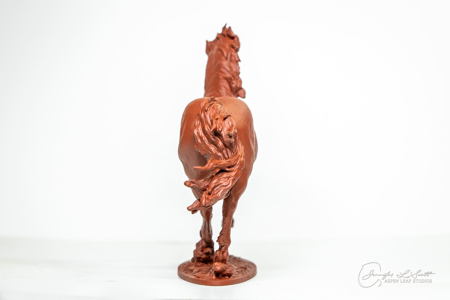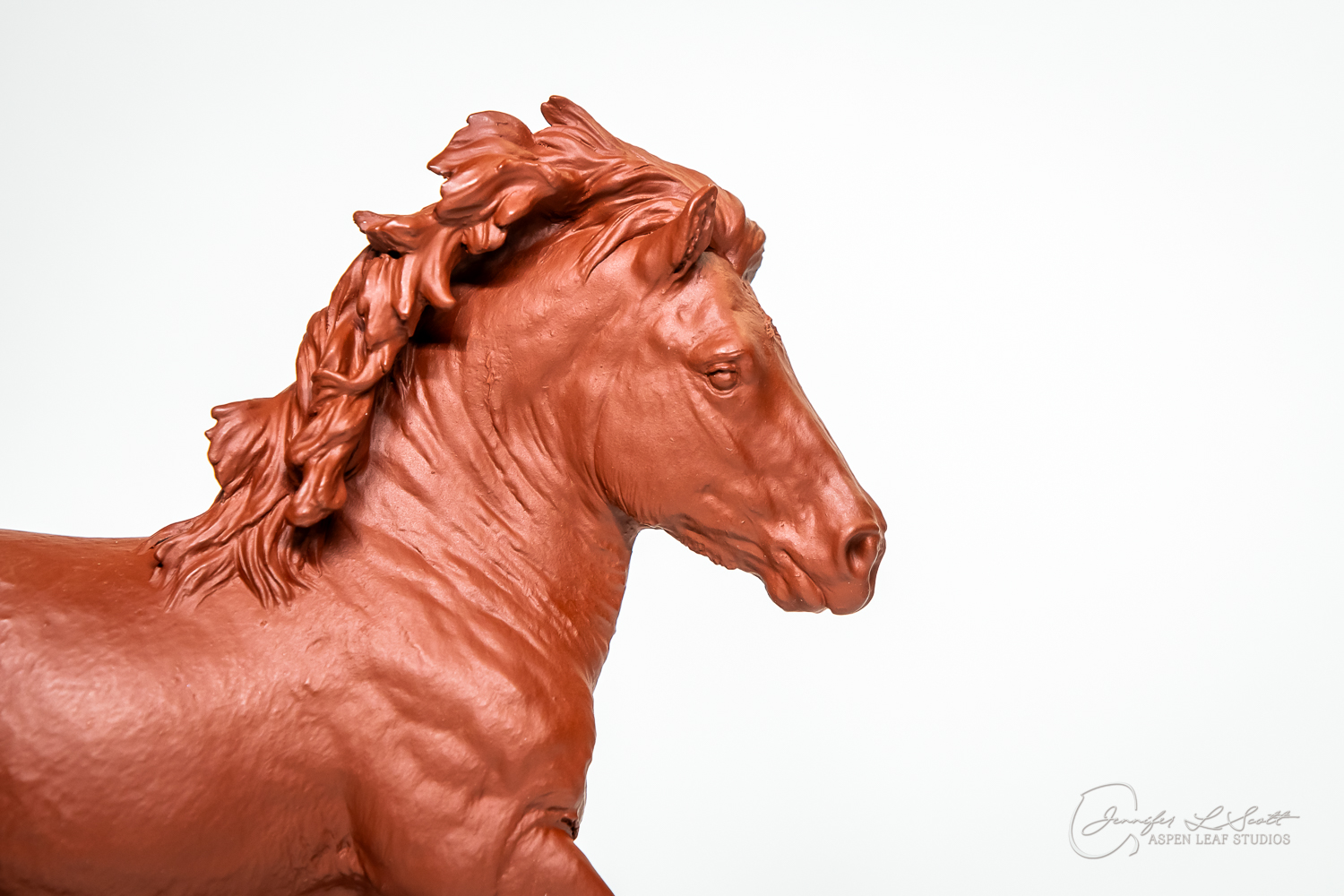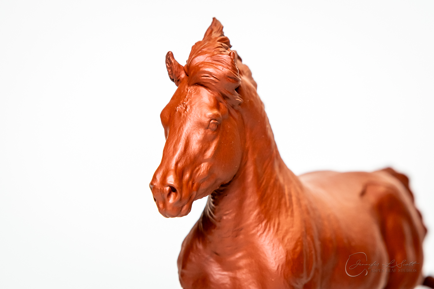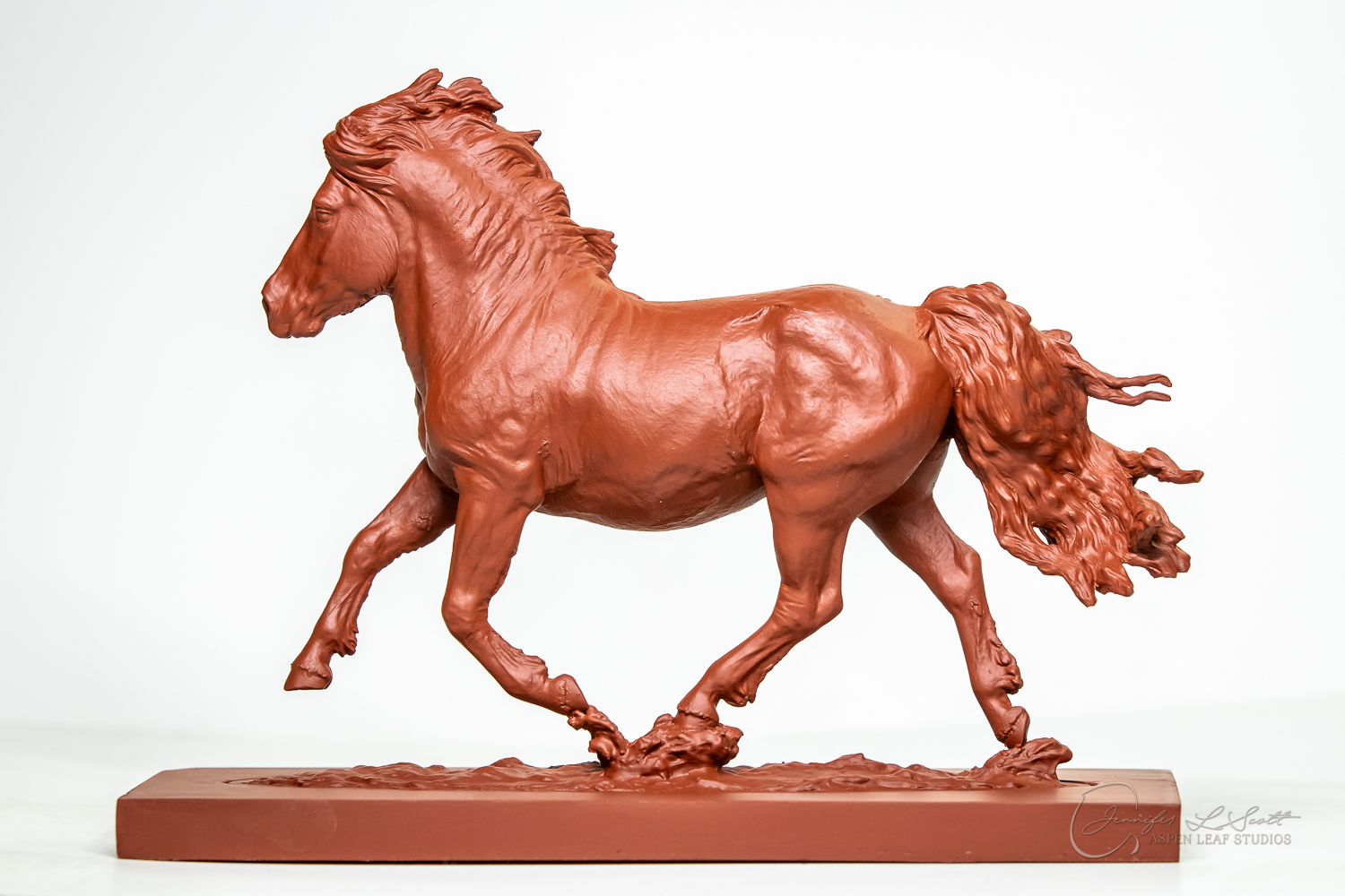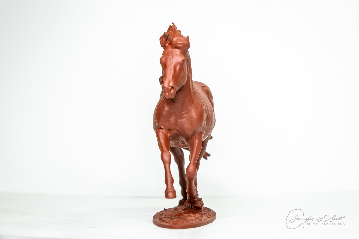 Like most of my work, Elton is smallish traditional scale and is a depiction of a British Shetland pony stallion. Jauntily trotting, he's the stout and hairy pony we all think of. You can just feel the mischief about to bubble forth. I love his semi-fluffy texture, which is interesting and yet not too much to make painting difficult.