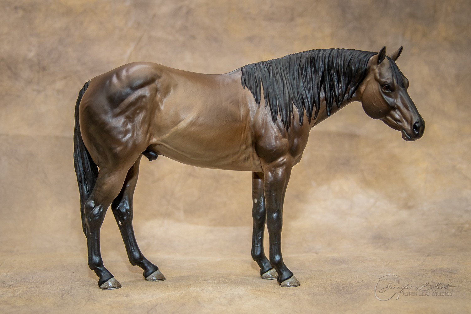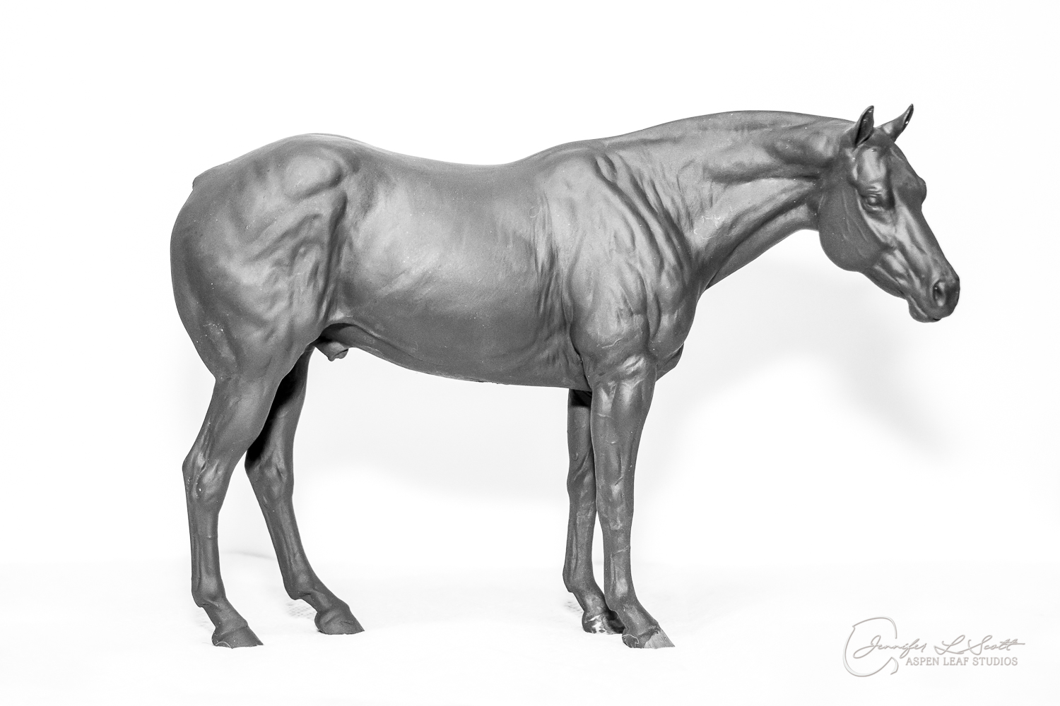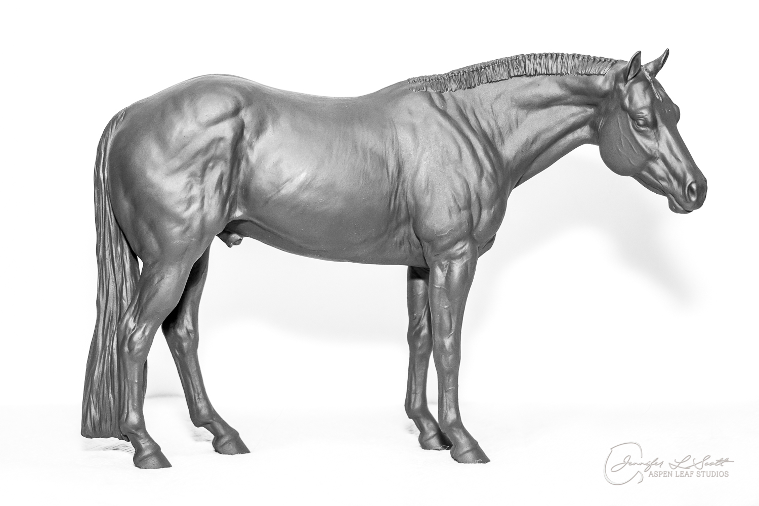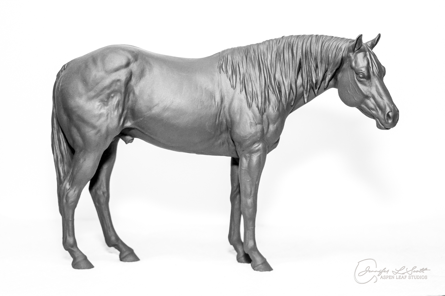 Levi is a quarter horse stallion sculpted to represent the doing horse. Don't be fooled by the standing position! This is an athlete that was built to move. I wanted to showcase the body type of the horse that will perform in reining, cutting, trail, etc. and stay sound while doing so. His soft expression shows the willing and workmanlike mind the breed is known for.