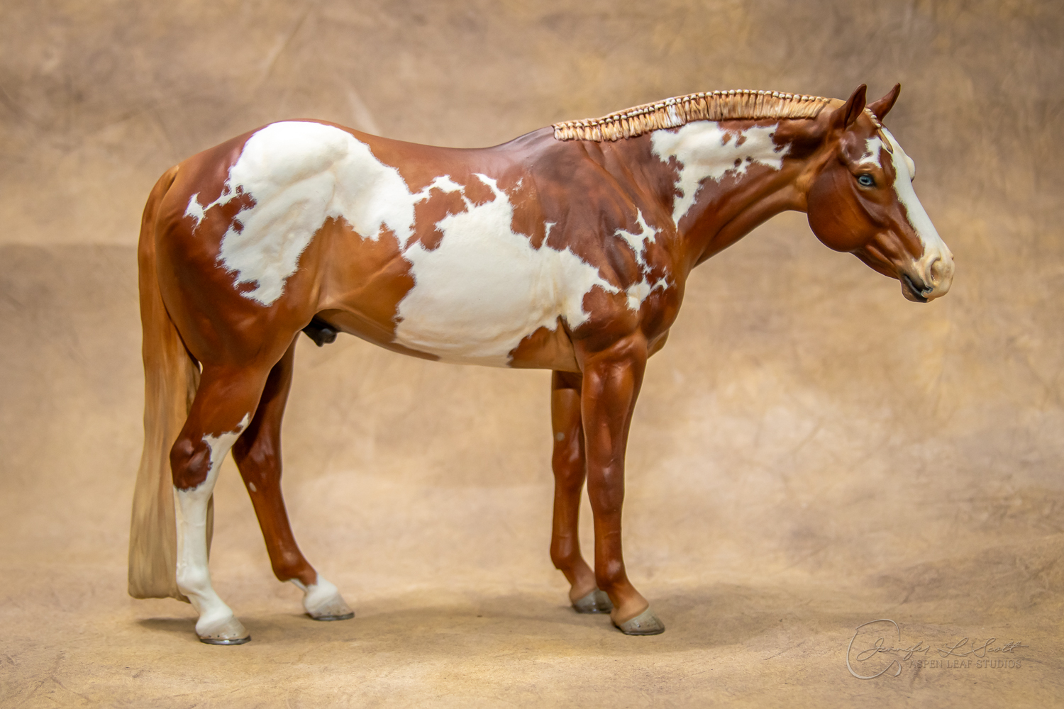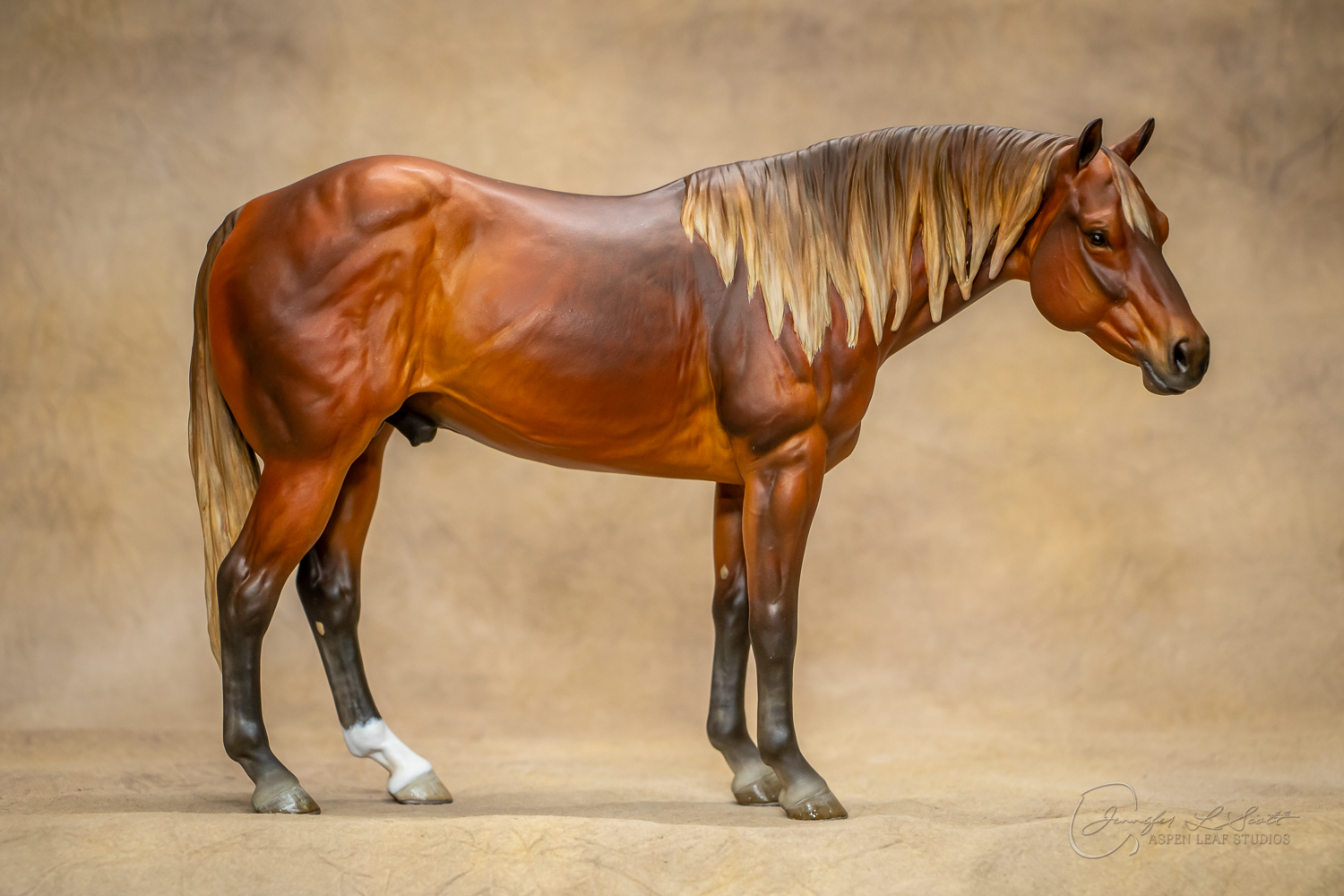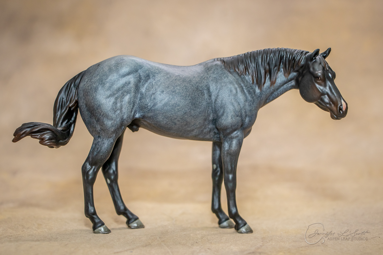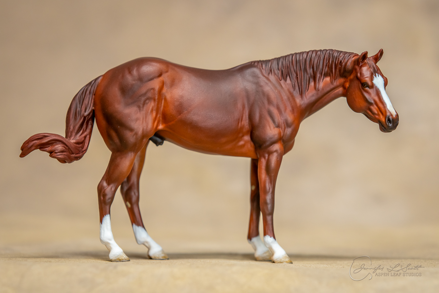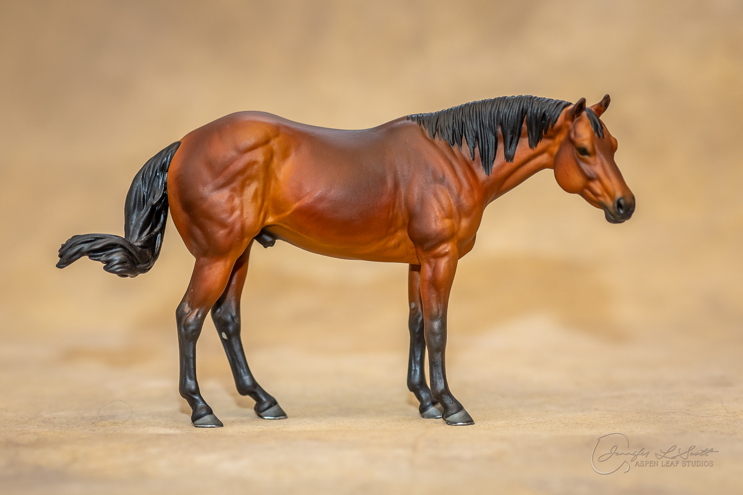 Levi is a quarter horse stallion sculpted to represent the doing horse. Don't be fooled by the standing position! This is an athlete that was built to move. I wanted to showcase the body type of the horse that will perform in reining, cutting, trail, etc. and stay sound while doing so. His soft expression shows the willing and workmanlike mind the breed is known for.