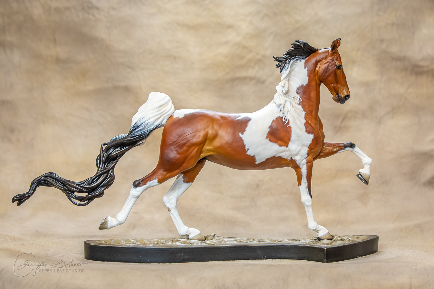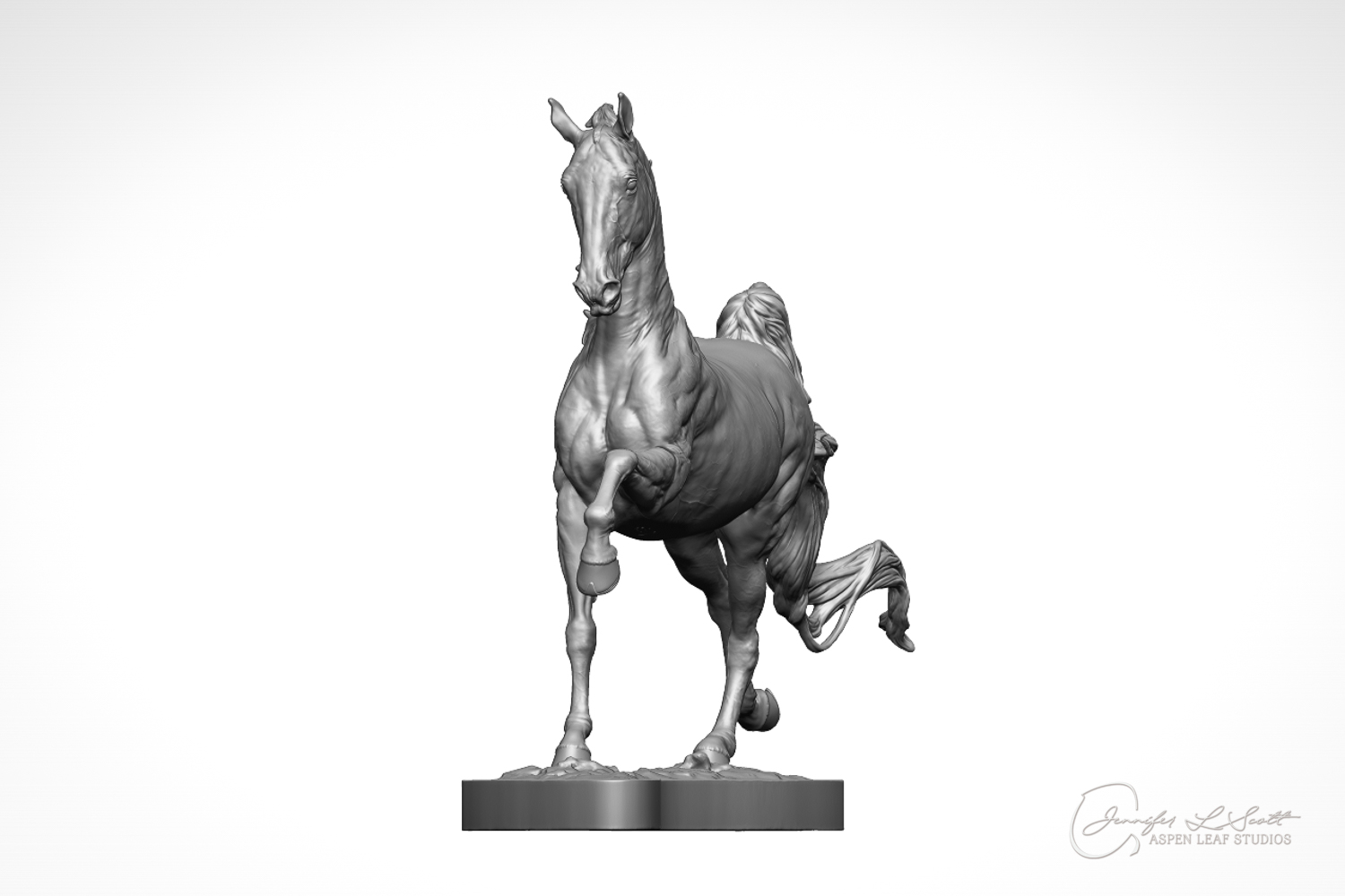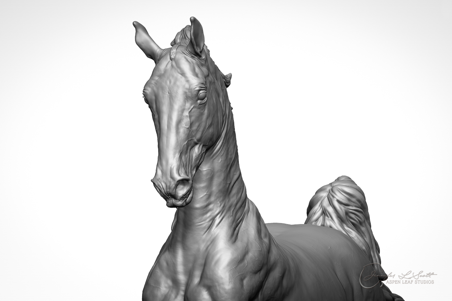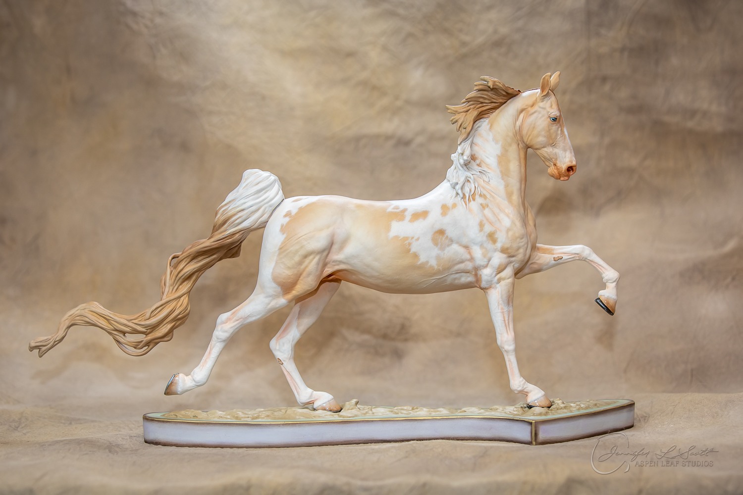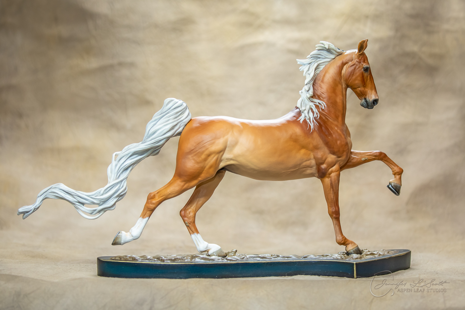 Maybelline has been in inception for a handful of years now. I always knew I wanted to do a flashy cantering Saddlebred sister-piece to Covergirl, but she was just something I thought of once and a while. Then I saw a photo Maggie Bennett shared and was struck - it was the piece in my head! I immediately contacted her to strike a deal for the sculpture rights. This sculpture oozes everything I wanted - elegance, vitality, and femininity. She beautifully matches the elevated art piece that Covergirl was.