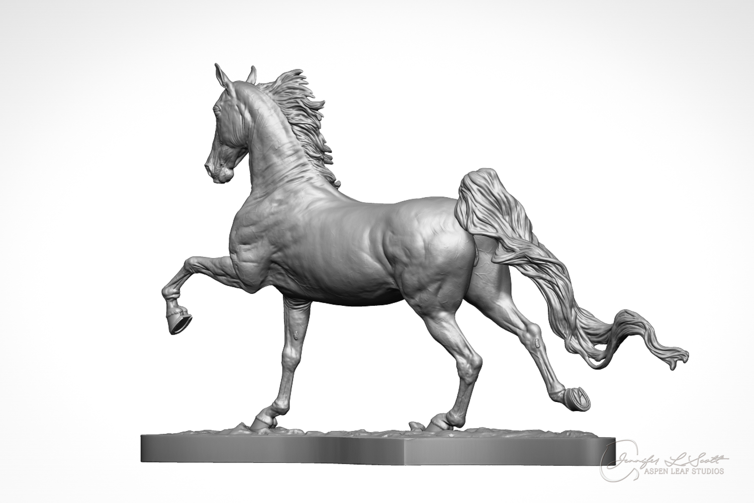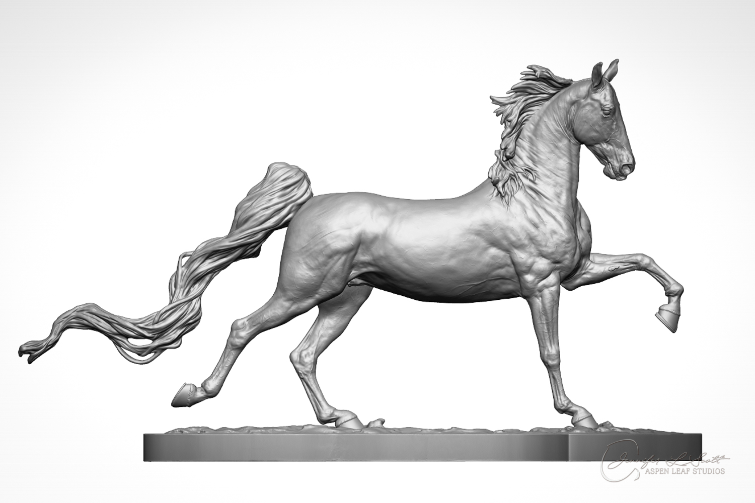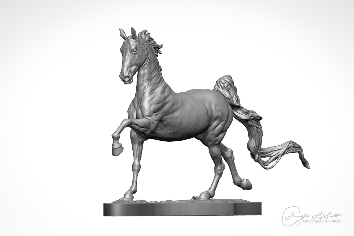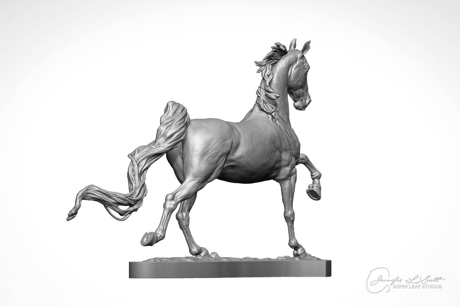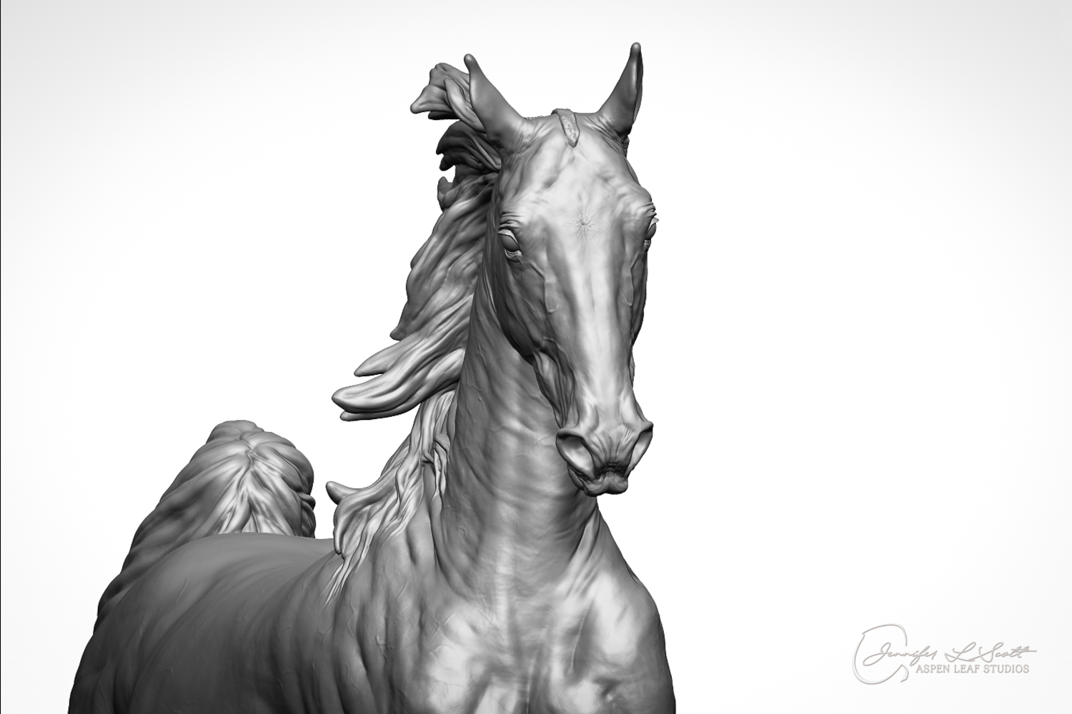 Maybelline has been in inception for a handful of years now. I always knew I wanted to do a flashy cantering Saddlebred sister-piece to Covergirl, but she was just something I thought of once and a while. Then I saw a photo Maggie Bennett shared and was struck - it was the piece in my head! I immediately contacted her to strike a deal for the sculpture rights. This sculpture oozes everything I wanted - elegance, vitality, and femininity. She beautifully matches the elevated art piece that Covergirl was.