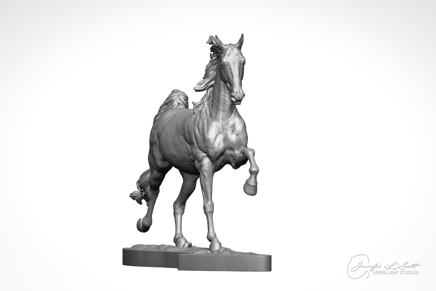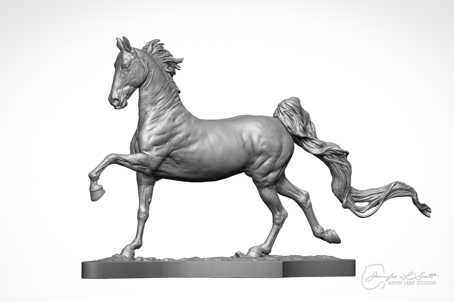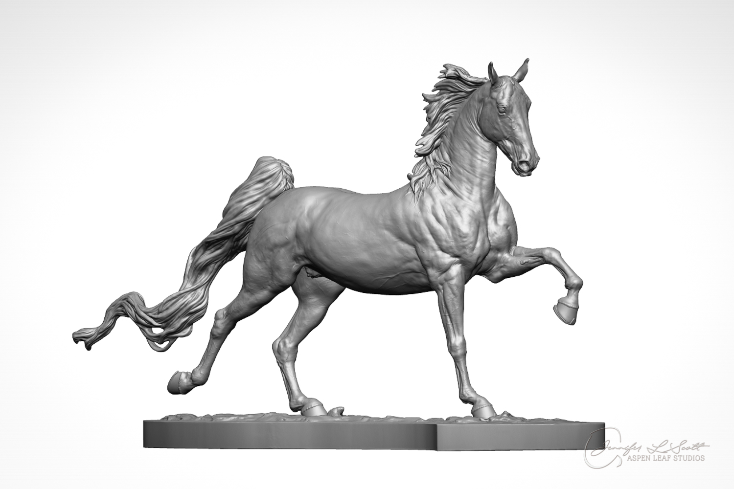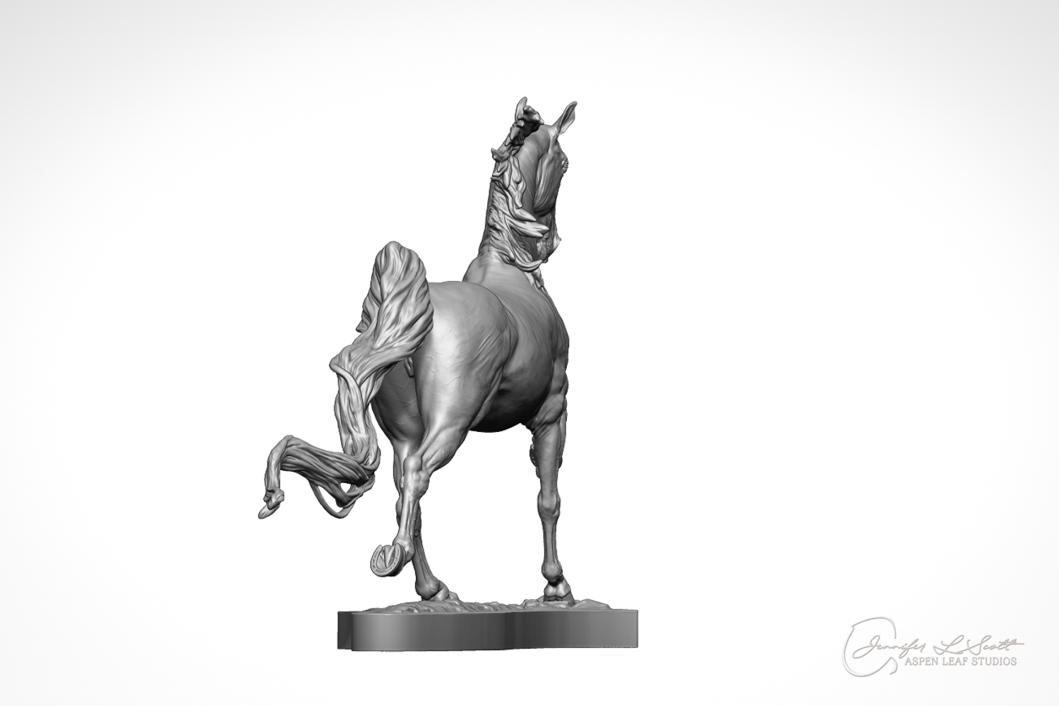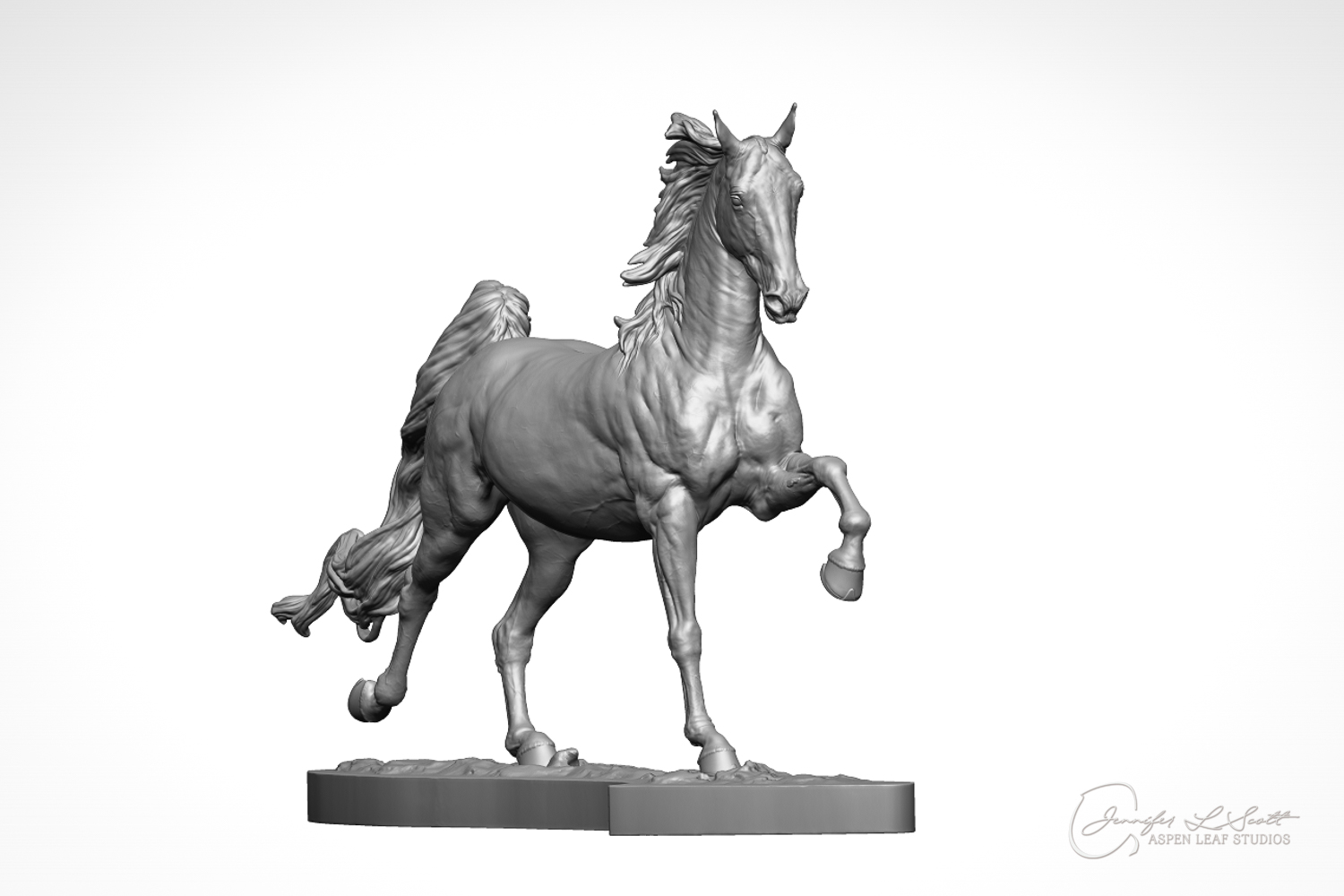 Maybelline has been in inception for a handful of years now. I always knew I wanted to do a flashy cantering Saddlebred sister-piece to Covergirl, but she was just something I thought of once and a while. Then I saw a photo Maggie Bennett shared and was struck - it was the piece in my head! I immediately contacted her to strike a deal for the sculpture rights. This sculpture oozes everything I wanted - elegance, vitality, and femininity. She beautifully matches the elevated art piece that Covergirl was.