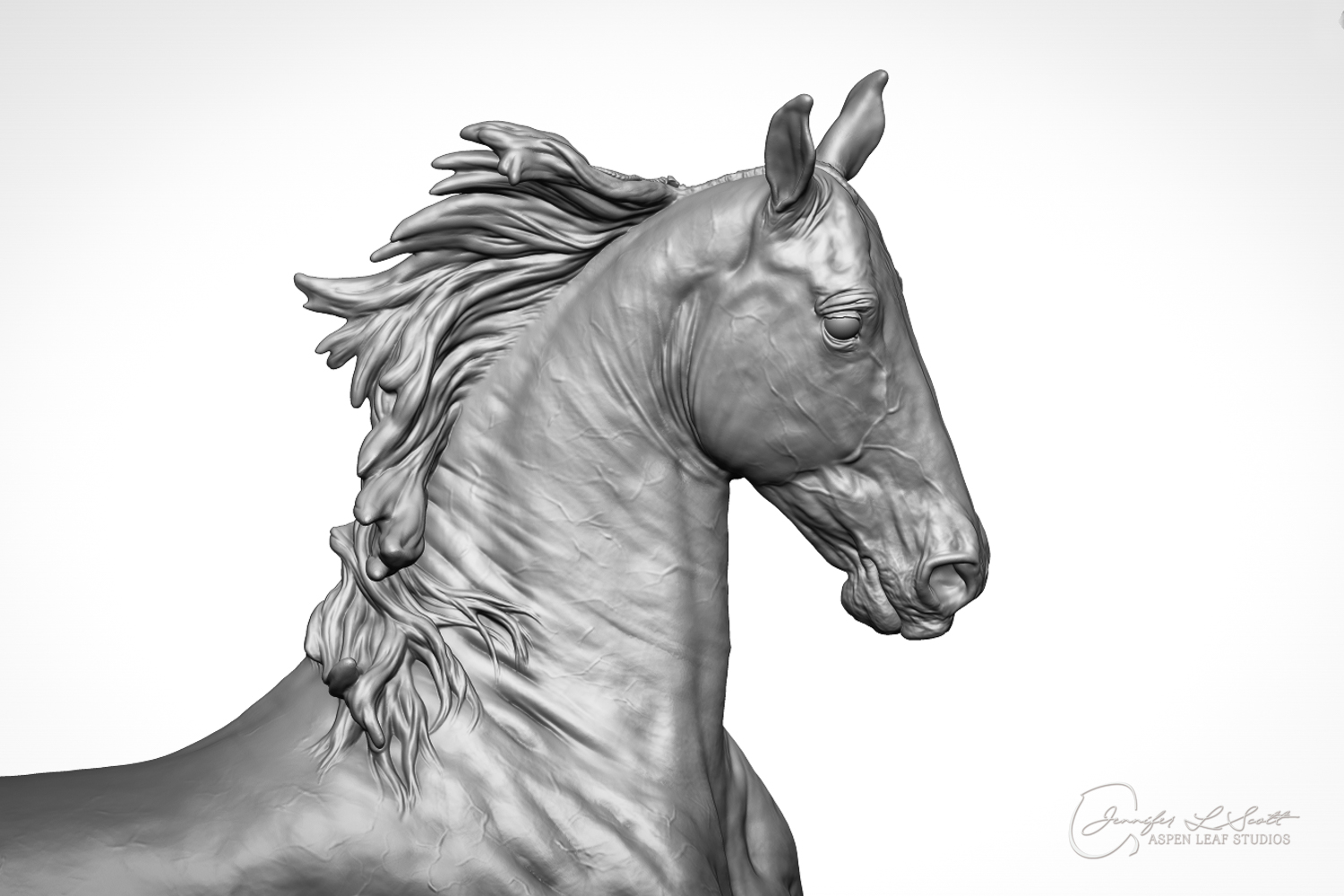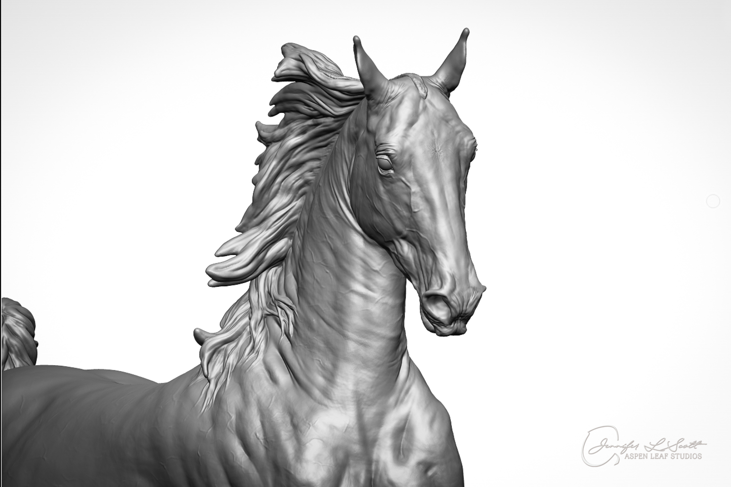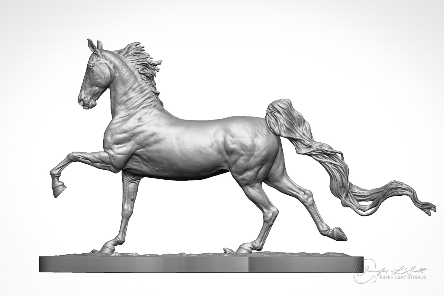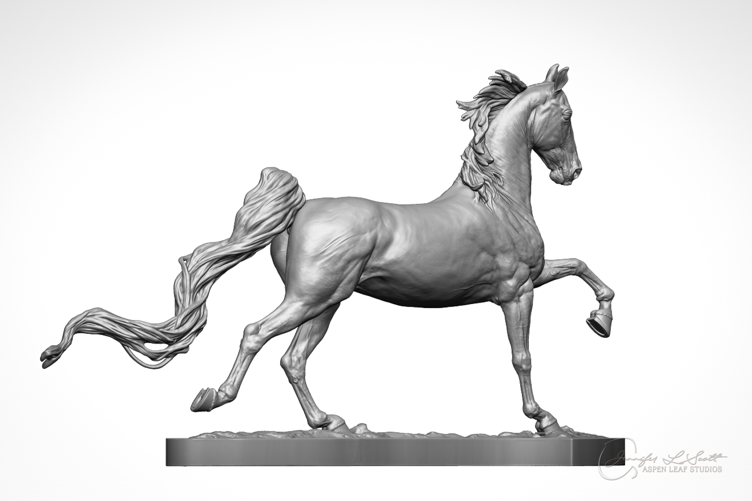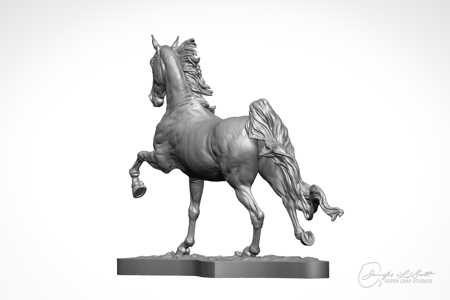 Maybelline has been in inception for a handful of years now. I always knew I wanted to do a flashy cantering Saddlebred sister-piece to Covergirl, but she was just something I thought of once and a while. Then I saw a photo Maggie Bennett shared and was struck - it was the piece in my head! I immediately contacted her to strike a deal for the sculpture rights. This sculpture oozes everything I wanted - elegance, vitality, and femininity. She beautifully matches the elevated art piece that Covergirl was.