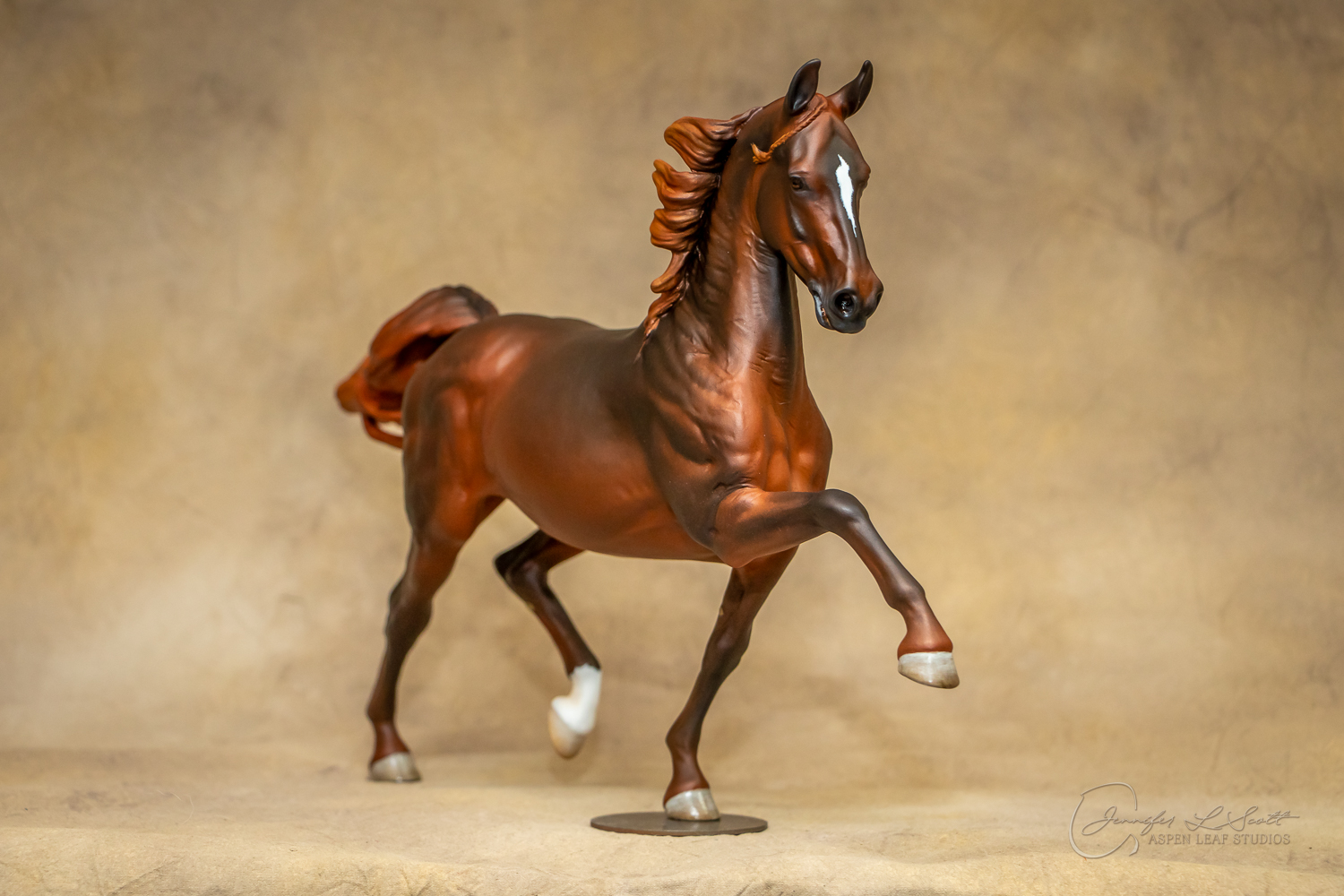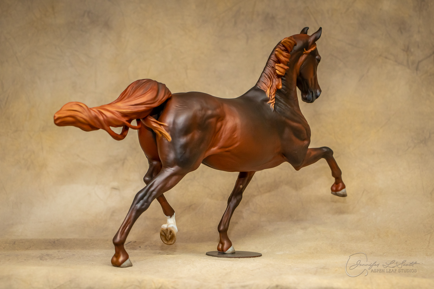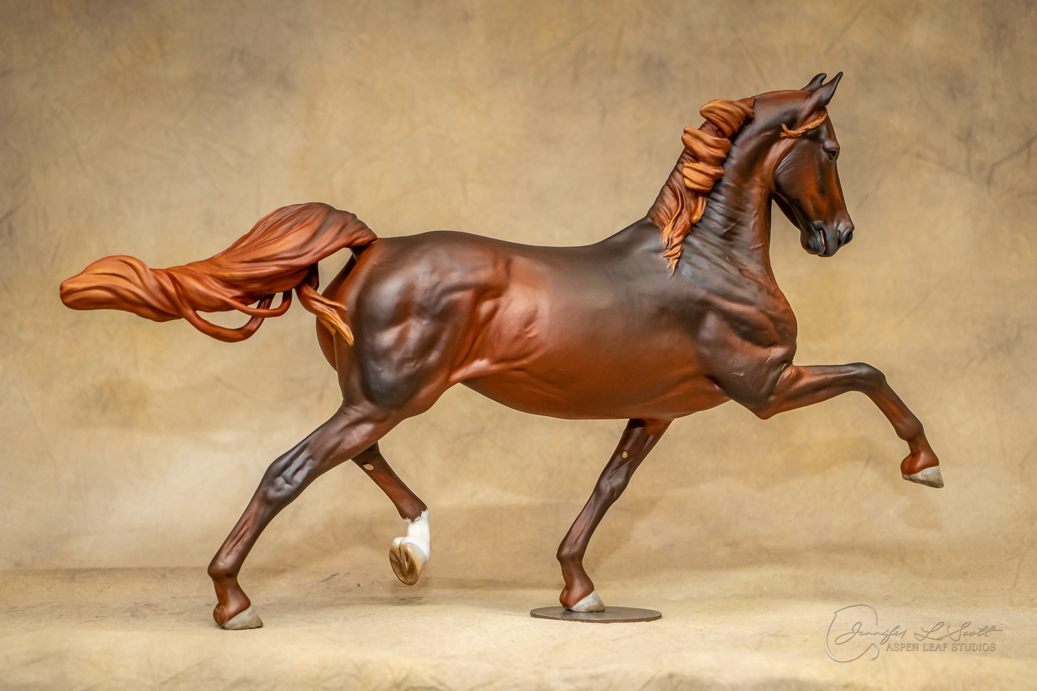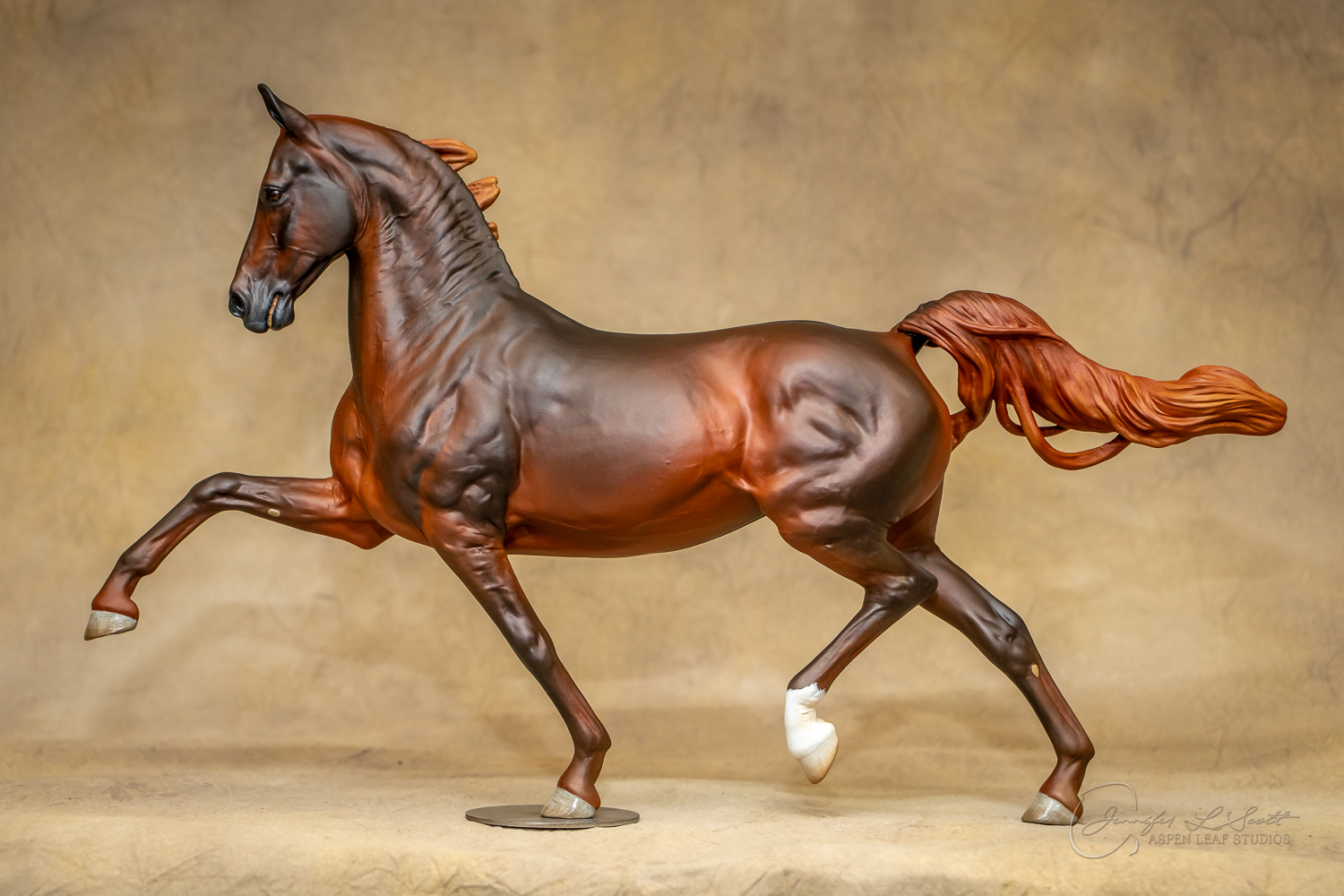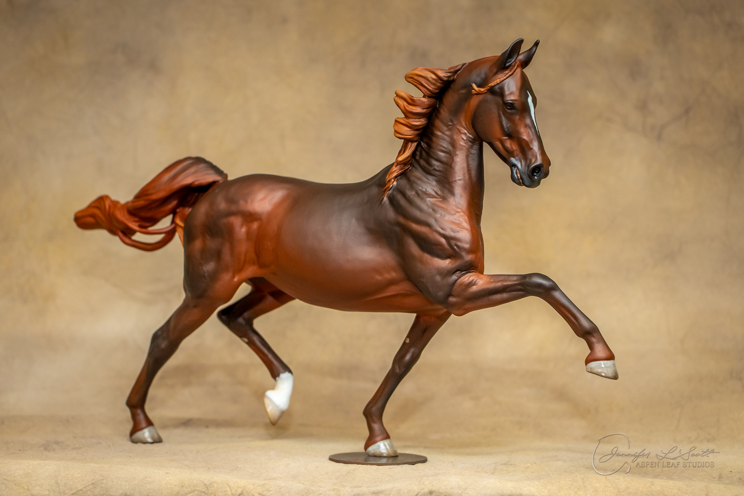 Painted red liver chestnut in 2019. This piece was created as one of the Random Entrant Prize giveaways for The Jennifer Show 2019.