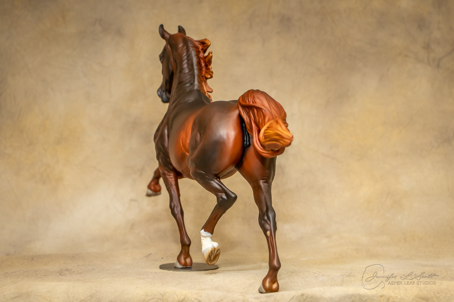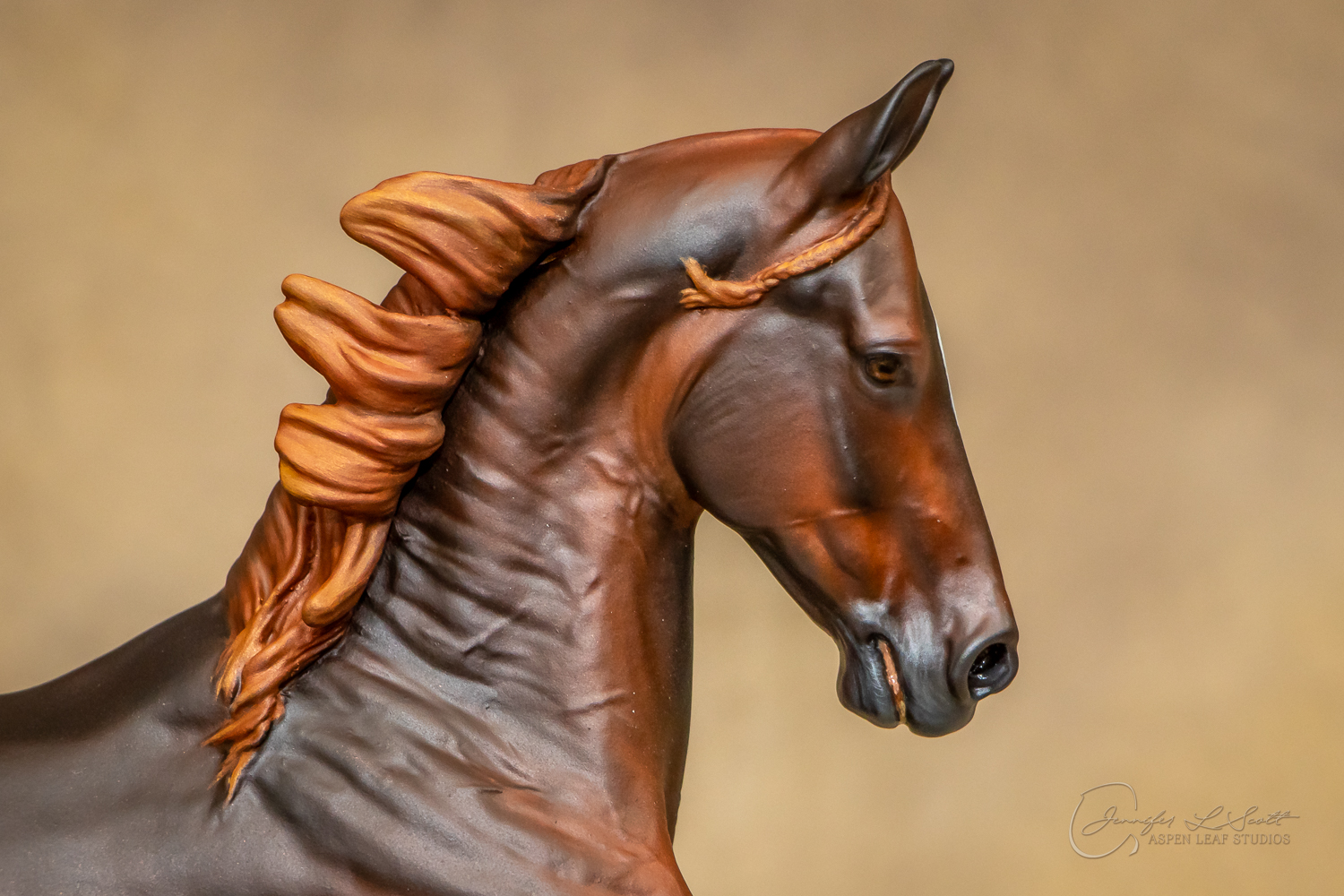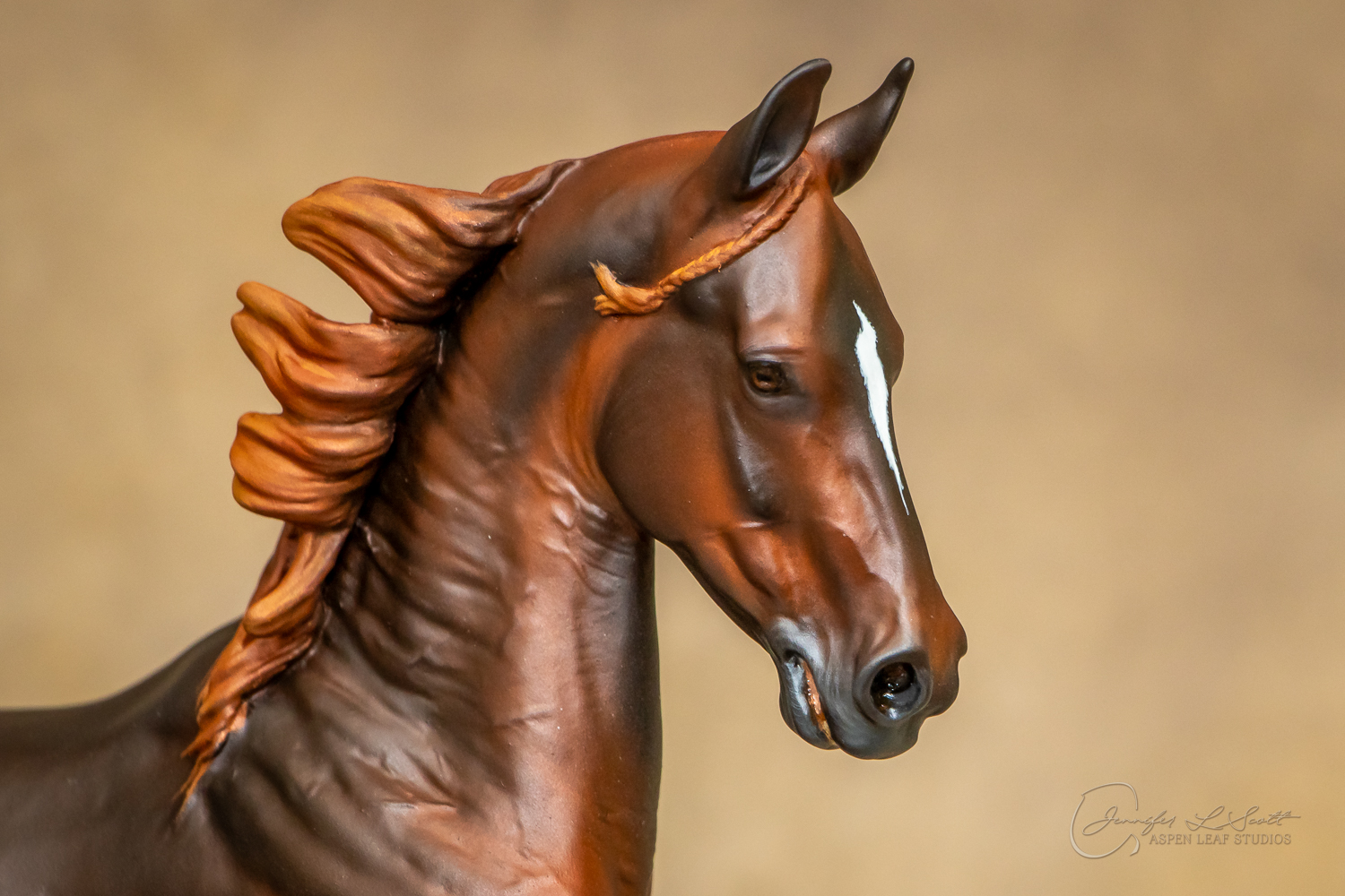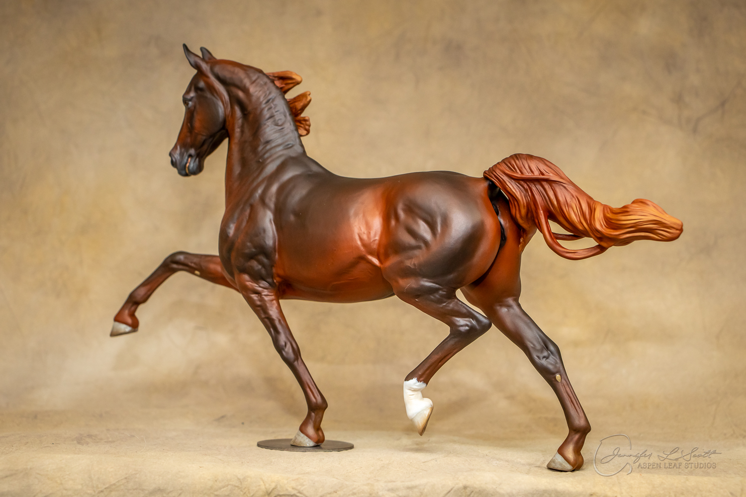 Painted red liver chestnut in 2019. This piece was created as one of the Random Entrant Prize giveaways for The Jennifer Show 2019.