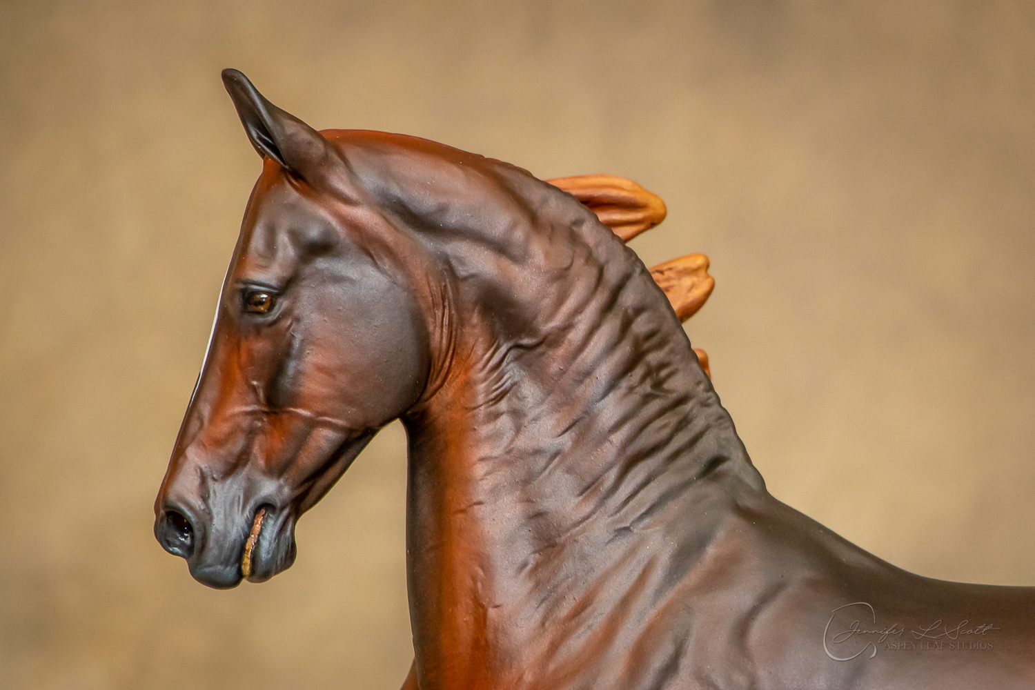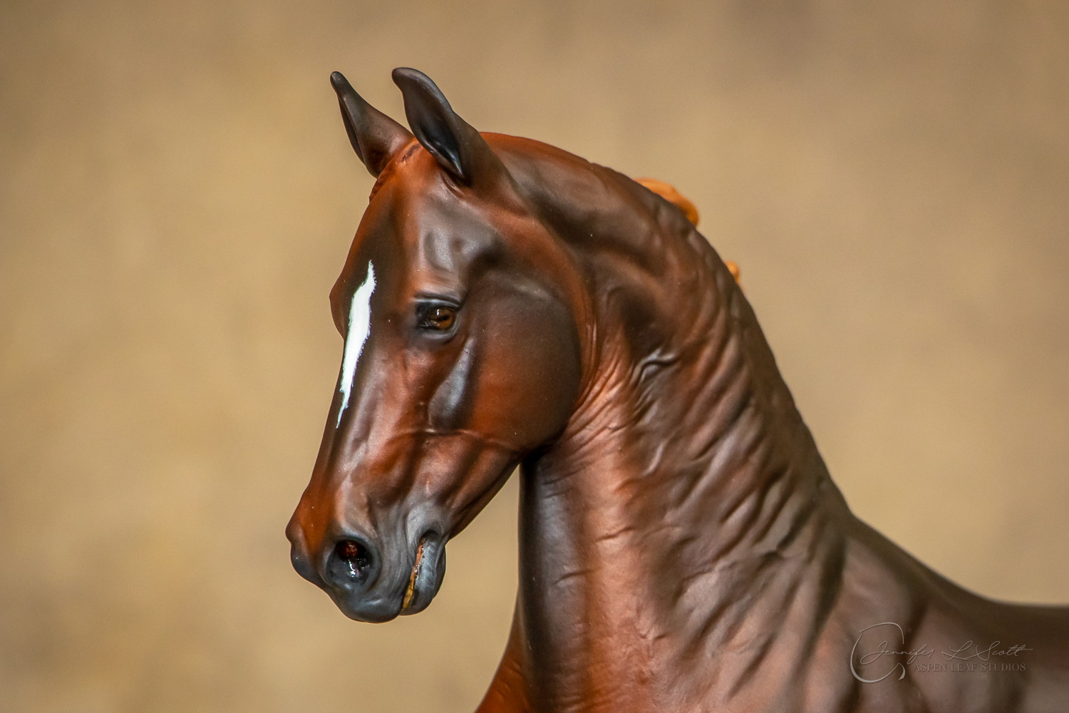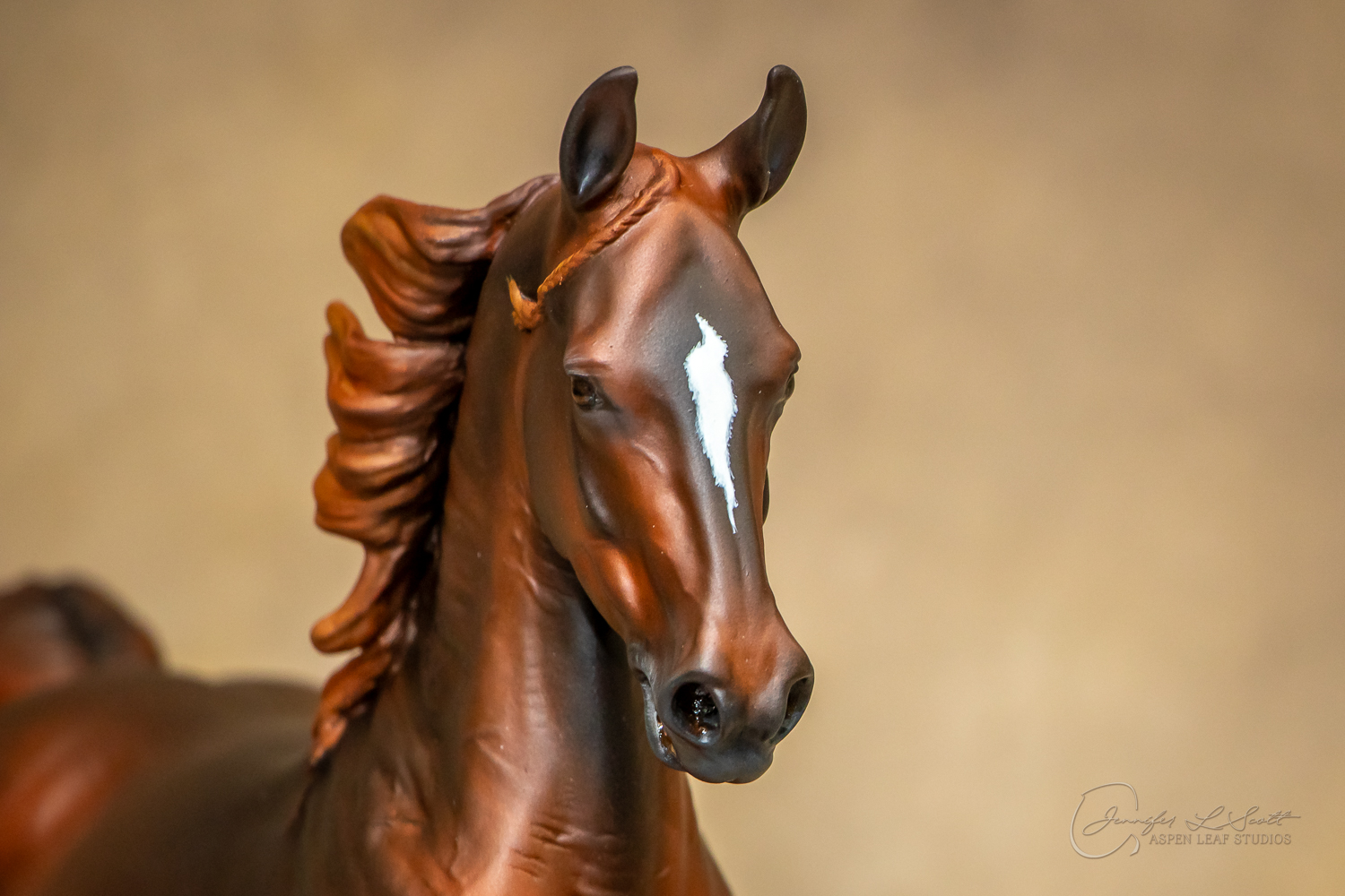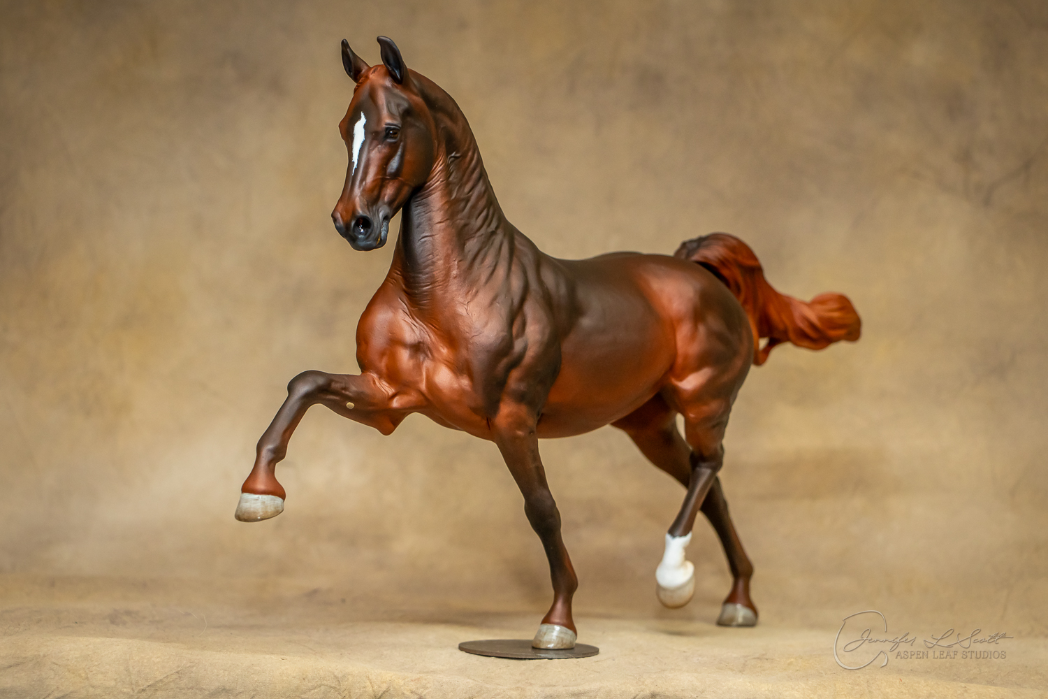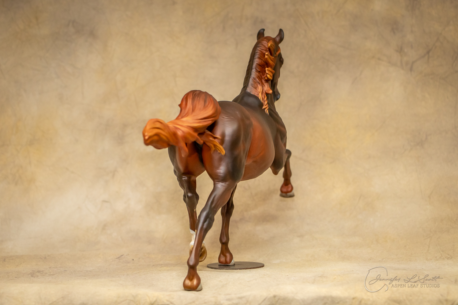Painted red liver chestnut in 2019. This piece was created as one of the Random Entrant Prize giveaways for The Jennifer Show 2019.