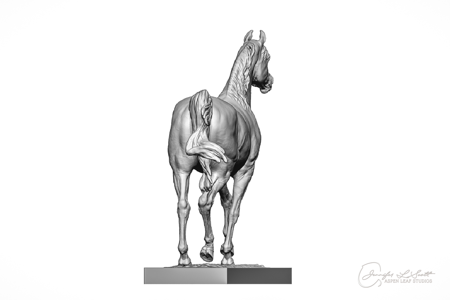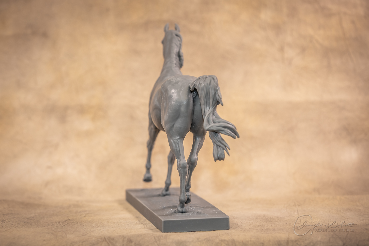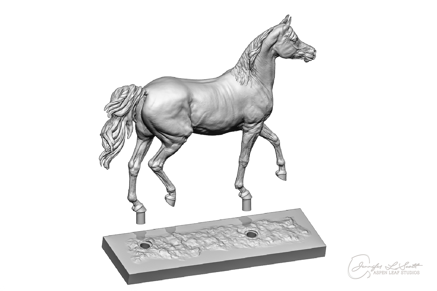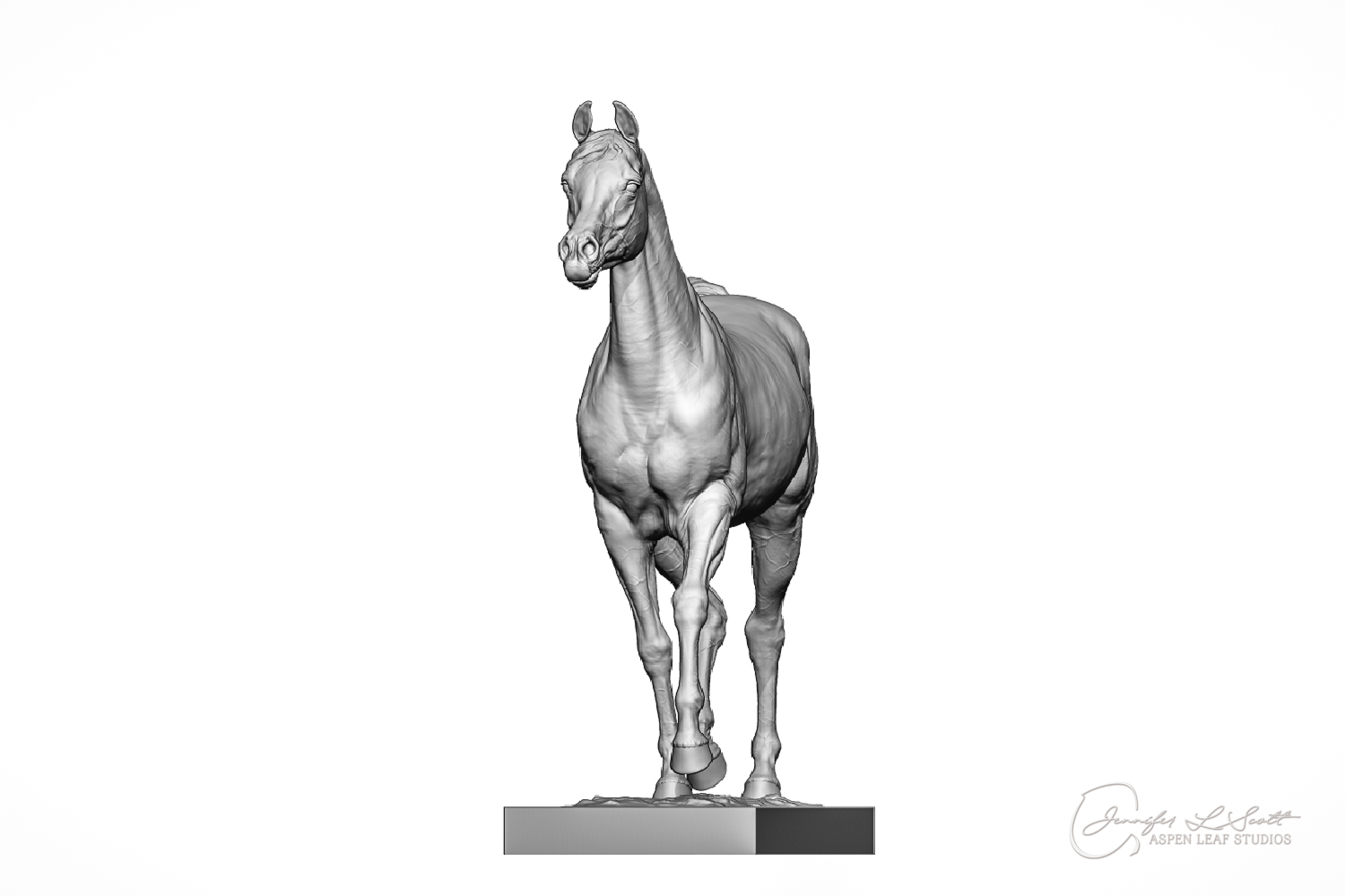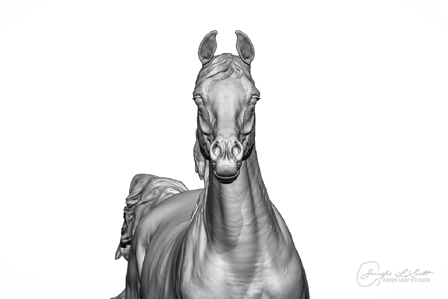 Talib (pronounced Tah-LEEB) is a plucky little (14 something hands high) representation of the Arabian. This sweet gelding is half-heartedly jigging /stepping towards something that's caught his attention. Perhaps his human has come to visit with treats? Because hims cute after all, and while clearly of good breeding this one is very much a pet. The most fun part of sculpting this piece was getting all that bendy Arabian movement. The nuances of gravity and weight shifts as he bends right, falling onto that inside shoulder. The step and support of the raised hip under his left hind and the drop of the opposite hip. The snakey-neck thing Arabians do. All of those shapes and details bring realism to this piece in ways that just sculpting pretty pieces can't. Then you add on that yummy texture and he's something that breathes. I'm so pleased with how he turned out.